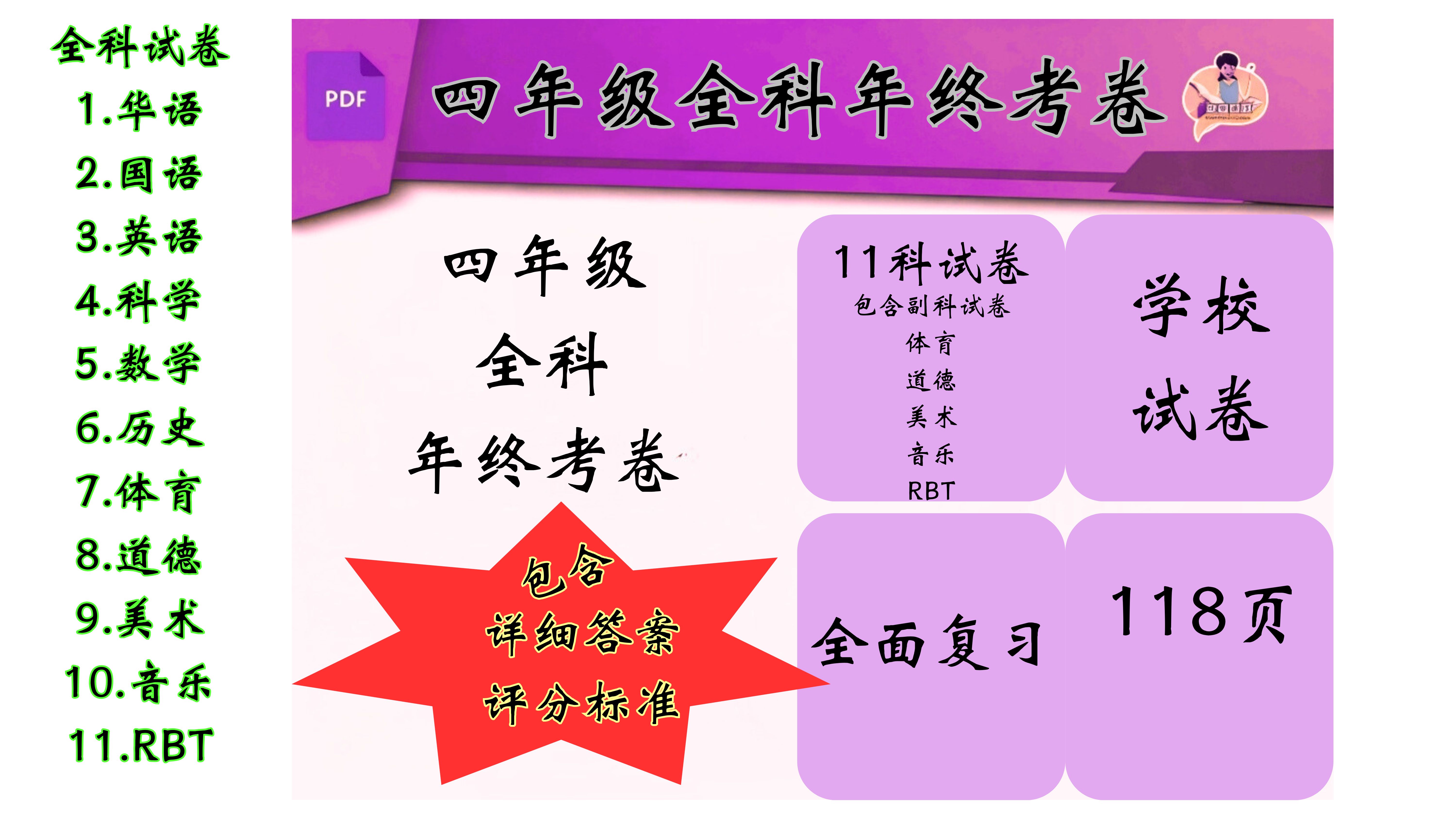 ![[SKC 四年级 ] 四年级全科年终试卷(11个科目试卷) - Image 2](https://laoshidehua.com/wp-content/uploads/2025/10/4-1.jpg)