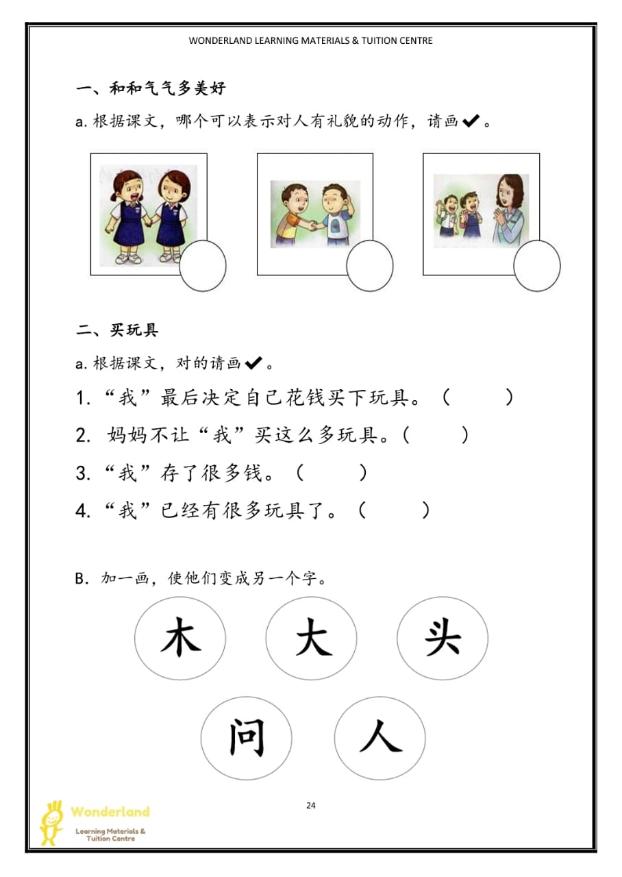 Standard 1/2/3/4 Chinese WHOLE year Practice + fill in the blank