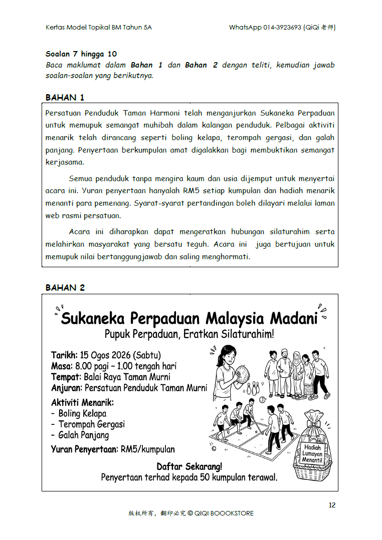 【5年级上册】Kertas Model Topikal Bahasa Melayu