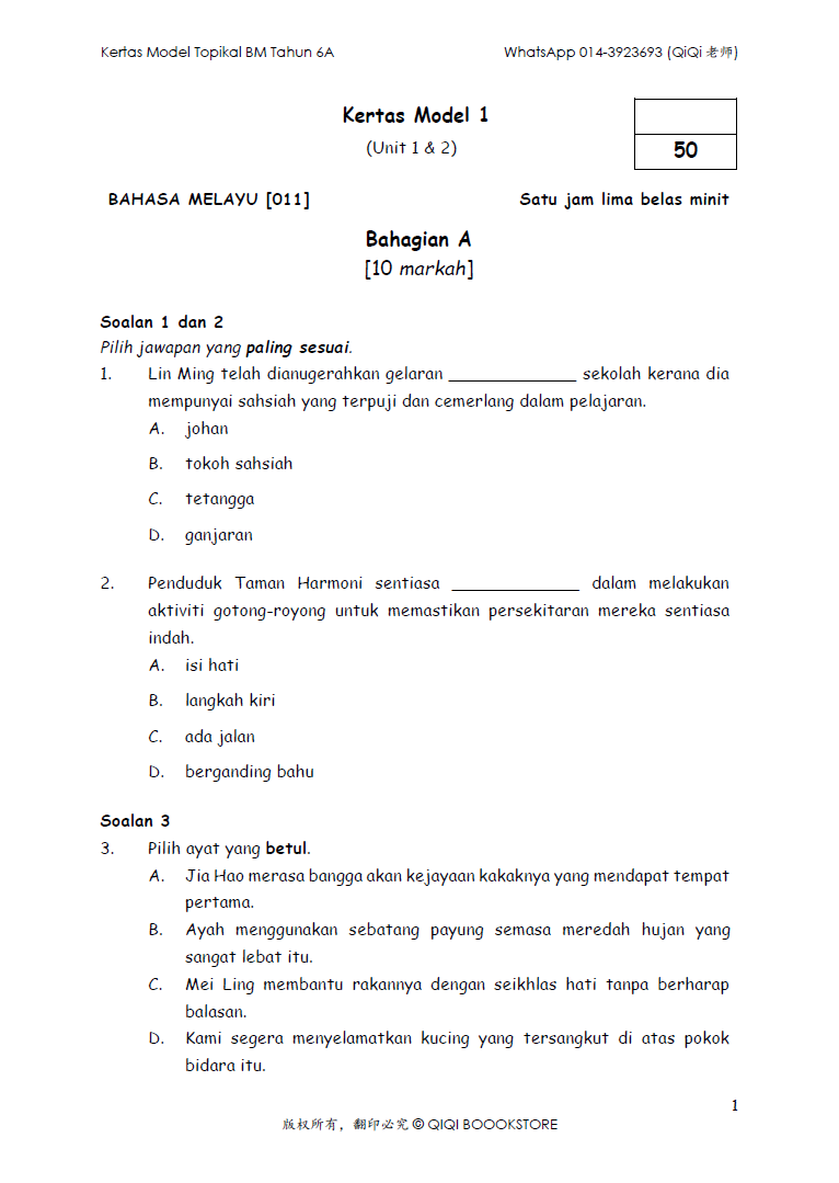 【6年级上册】Kertas Model Topikal Bahasa Melayu