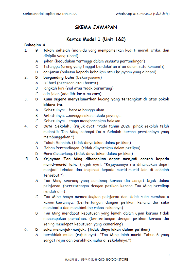 这一次,不是单纯给练习,也在Bahagian A加上答案解释,帮孩子在年中考前,看懂为什么,真正复习到点上!