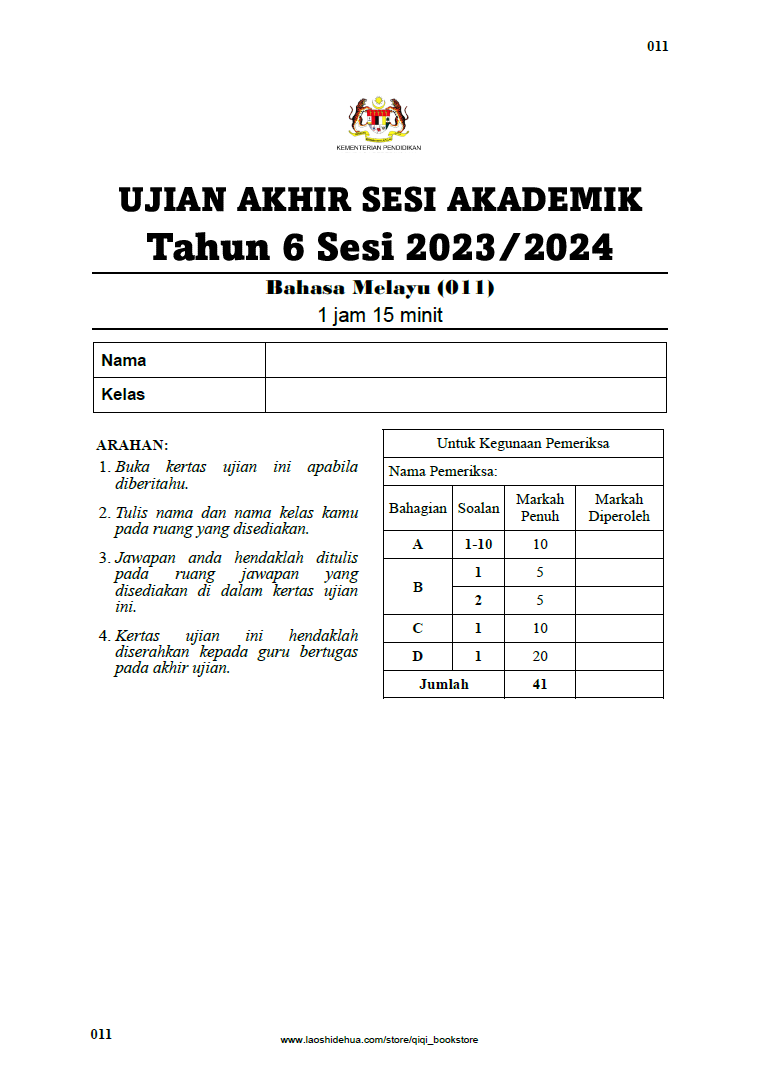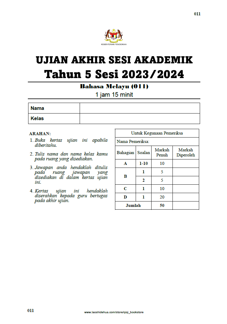 | Kertas Ujian UASA 2023/2024 | Tahun 4, Tahun 5, Tahun 6 |