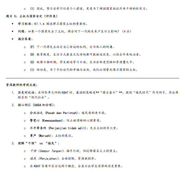 四至六年级 KSSM 历史 高思维题(KBAT)模拟集