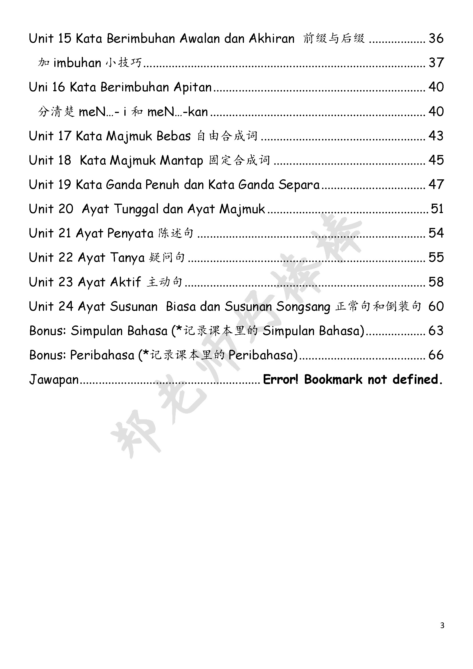 *24个单元都有笔记+答案, bonus Simpulan Bahasa & Peribahasa的练习