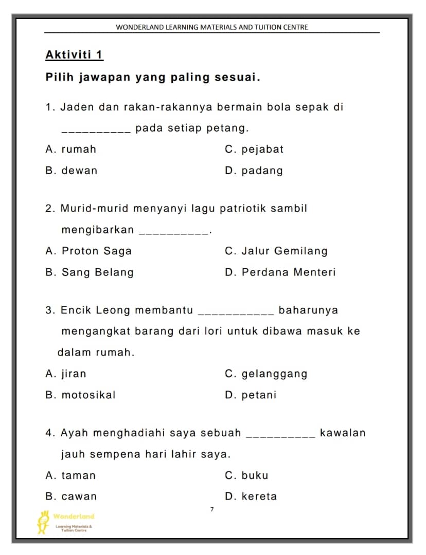 多种题型 (Several types of exercises) 包括bina ayat, 选择题and etc