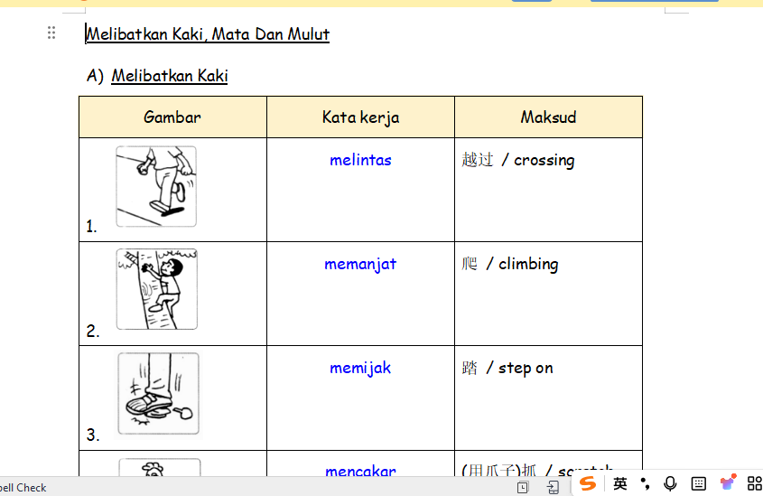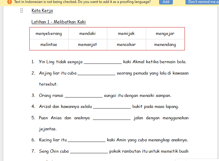 * 图画动词填充 Padankan gambar kata kerja