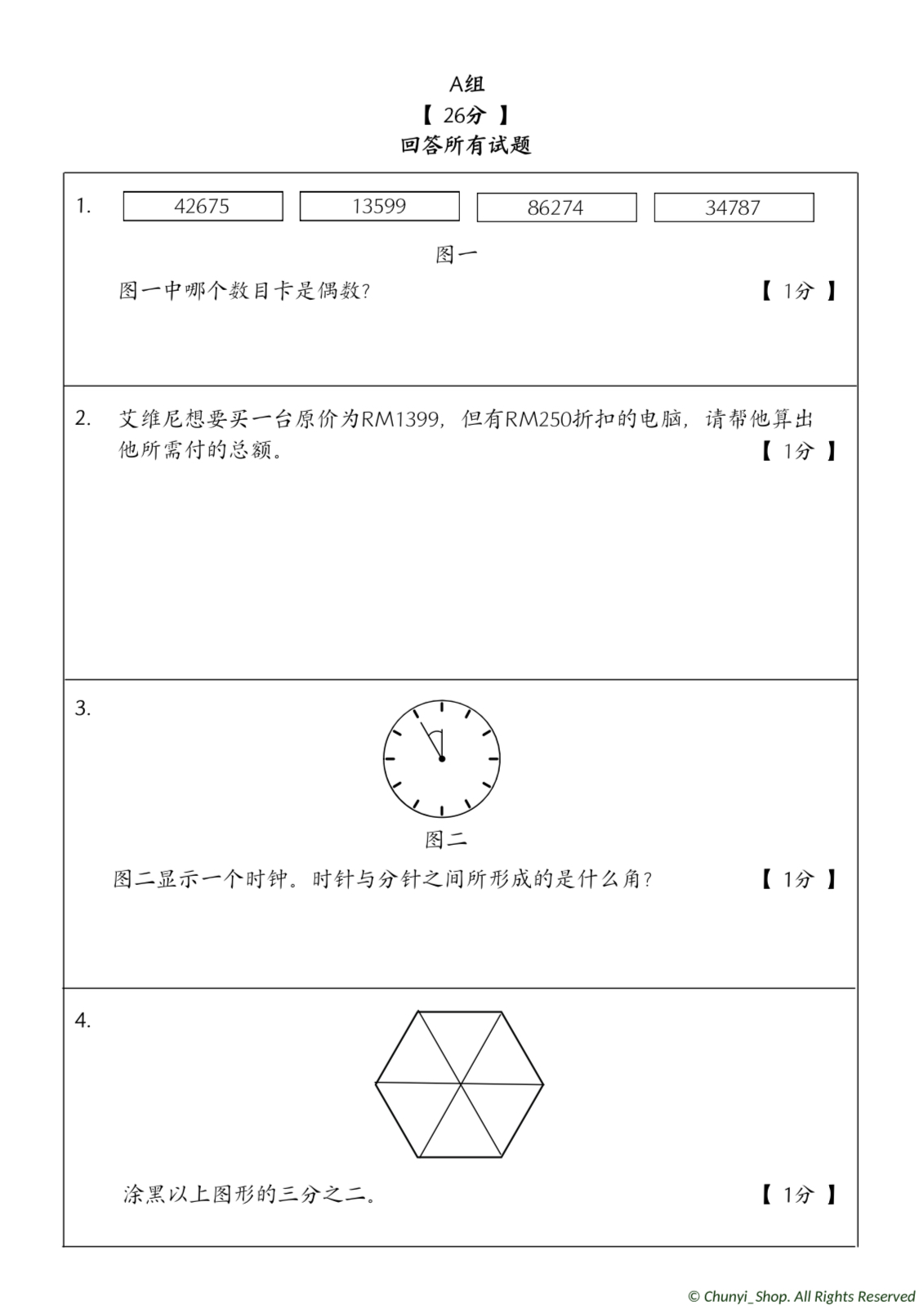 🔊四年级UASA 5份数学试卷新鲜出炉🥳