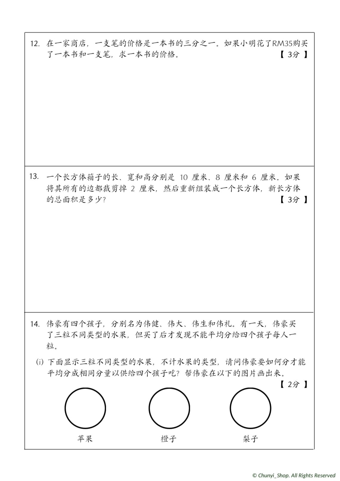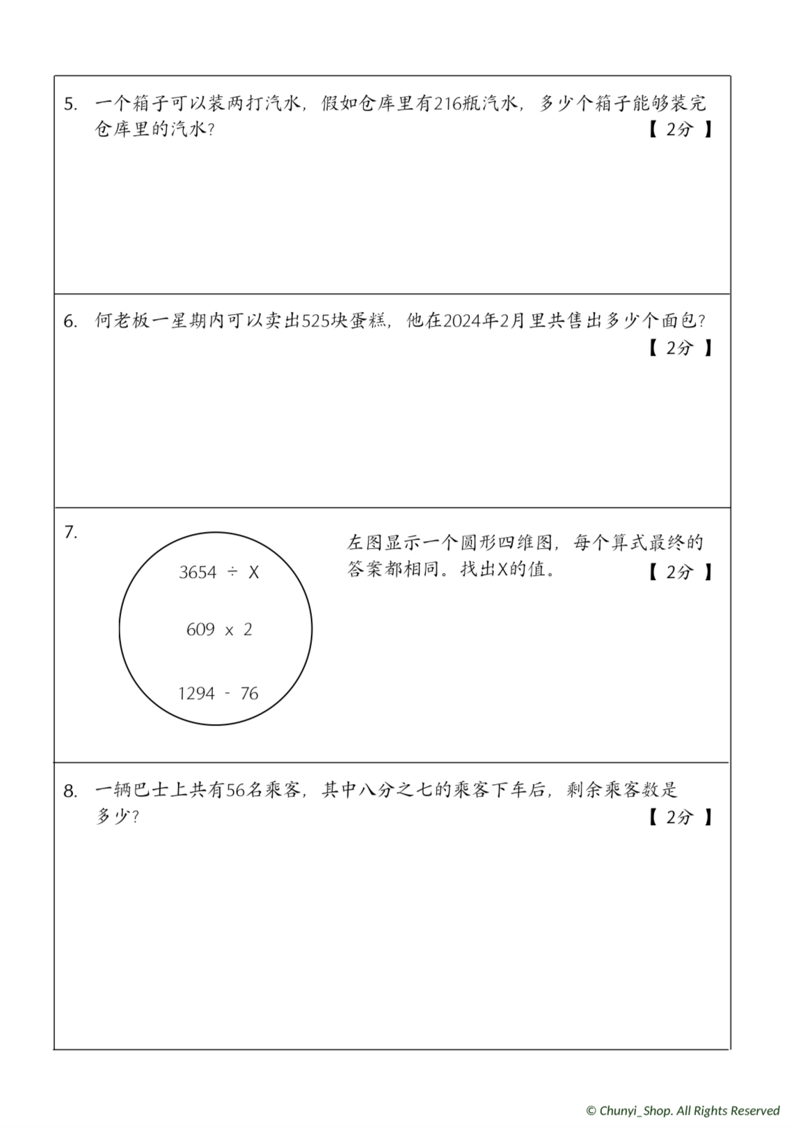 👉 此试卷的版权属于chunyi_shop,一律不允许转卖或抄袭,发现一律公开处理
