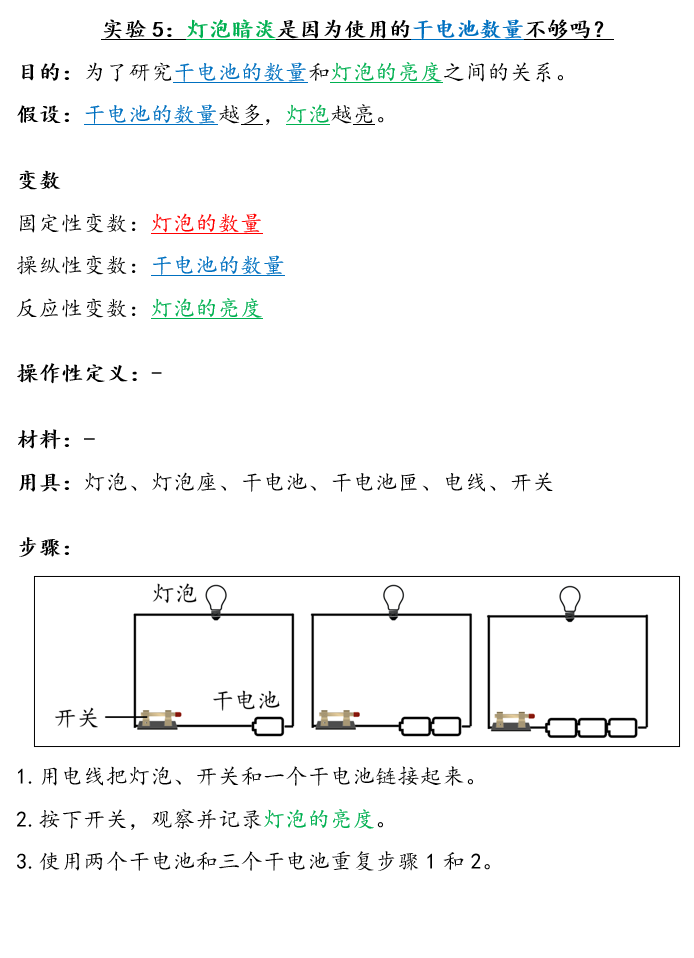 实验5:灯泡暗淡是因为使用的干电池数量不够吗?【课本第16页】