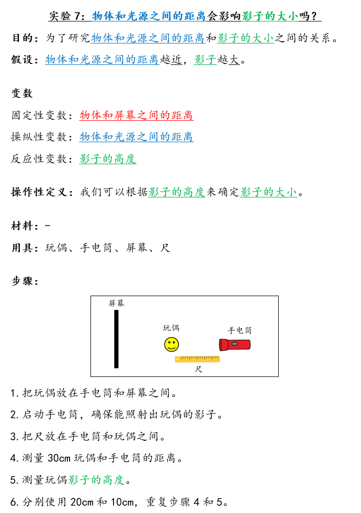 实验7:物体和光源之间的距离会影响影子的大小吗?【课本第82页】