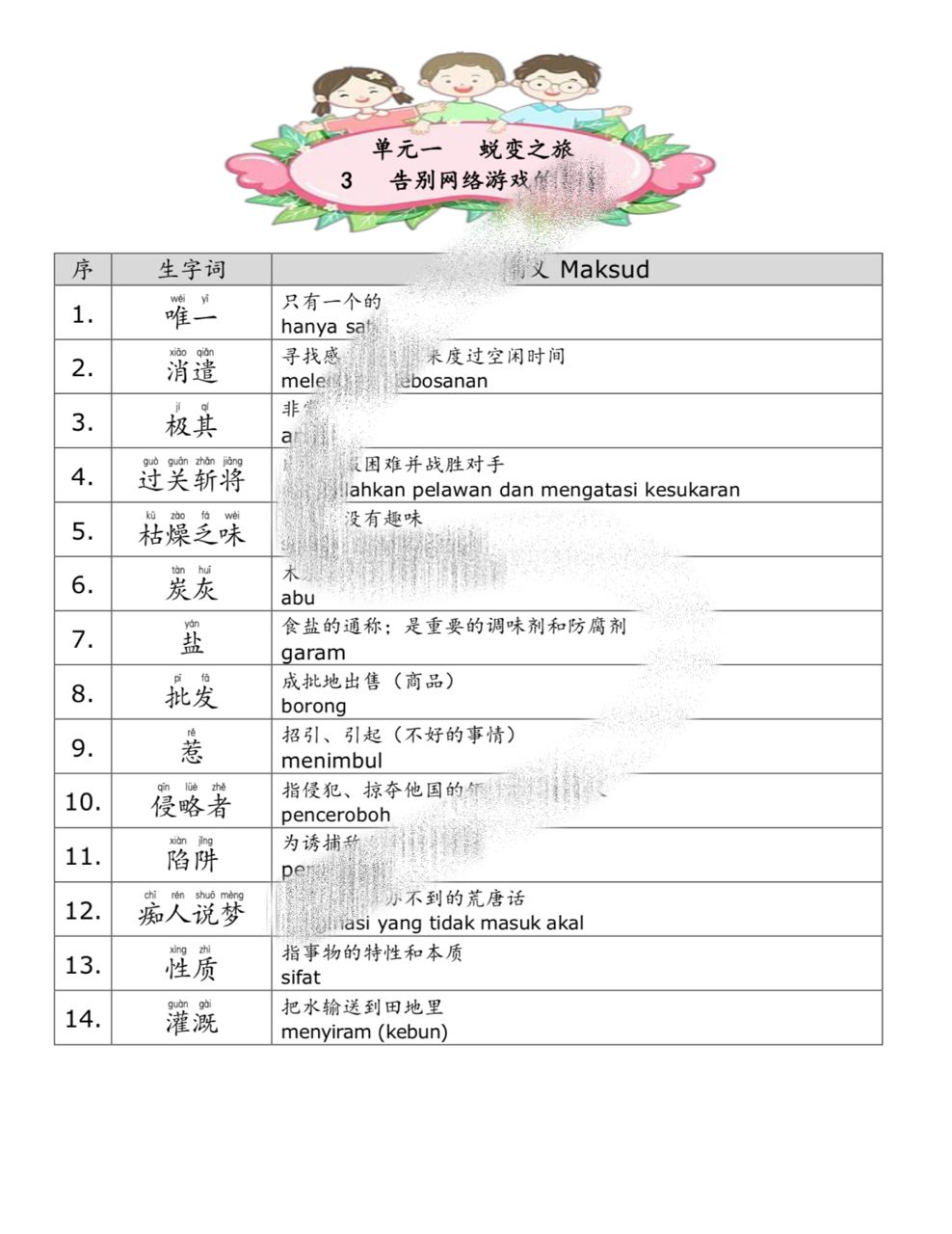 🌸生字附有拼音