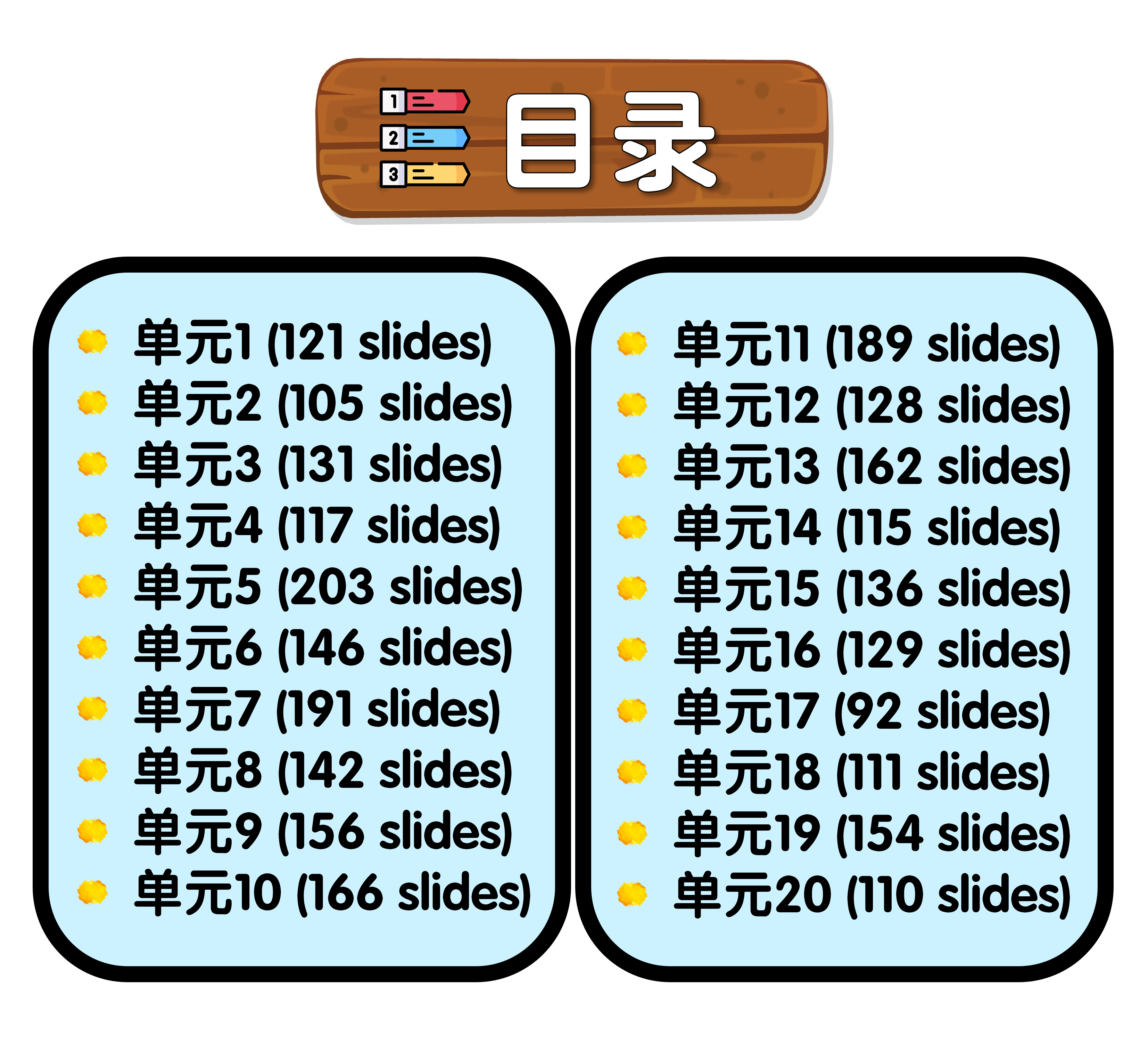 | 单元 Units | 全套(单元1-20) All units, 单元1 Unit 1, 单元2 Unit 2, 单元3 Unit 3, 单元4 Unit 4, 单元5 Unit 5, 单元6 Unit 6, 单元7 Unit 7, 单元8 Unit 8, 单元9 Unit 9, 单元10 Unit 10, 单元11 Unit 11, 单元12 Unit 12, 单元13 Unit 13, 单元14 Unit 14, 单元15 Unit 15, 单元16 Unit 16, 单元17 Unit 17, 单元18 Unit 18, 单元19 Unit 19, 单元20 Unit 20 |