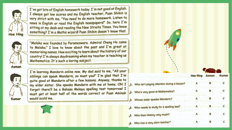 📌include vocabulary, grammar, reading comprehension, exercises, online quiz
