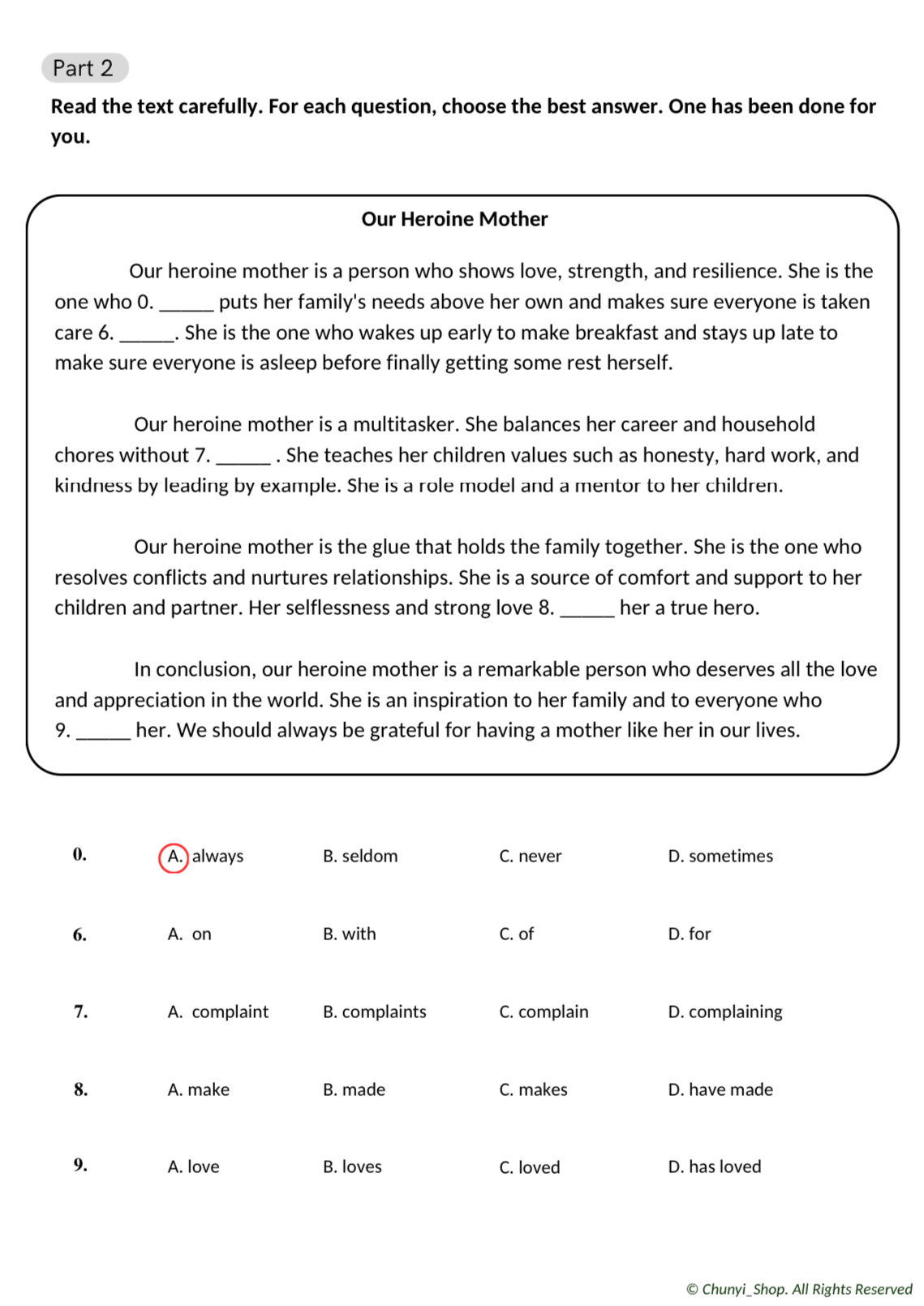 英文考卷+答案纸(PDF)
