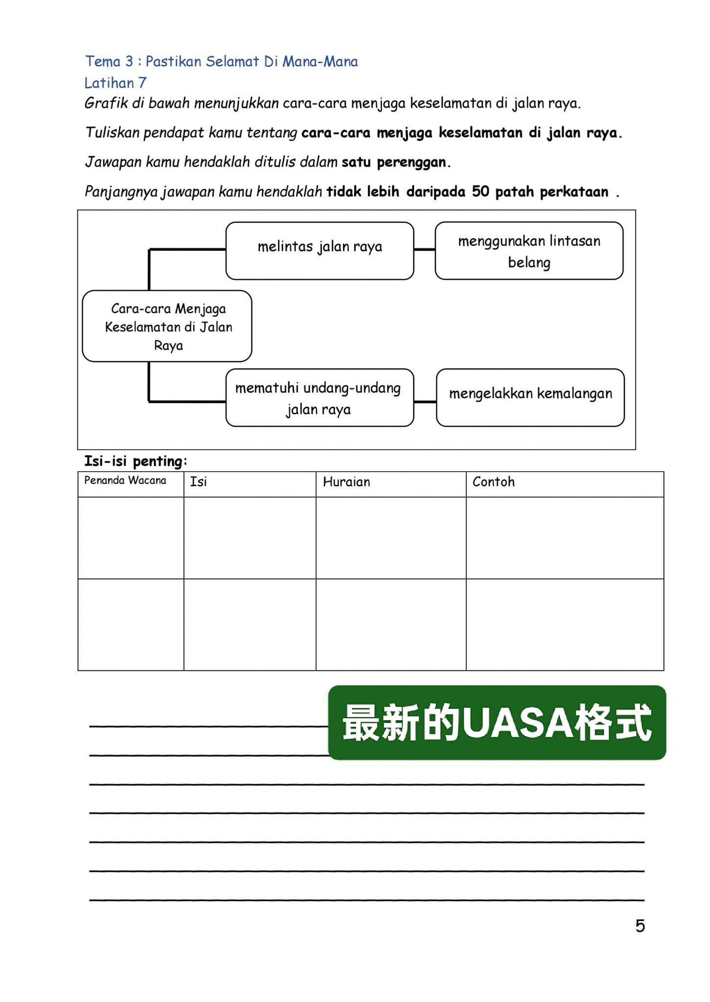 以最新UASA格式,配合5年级KSSR SEMAKAN国文课本编写!