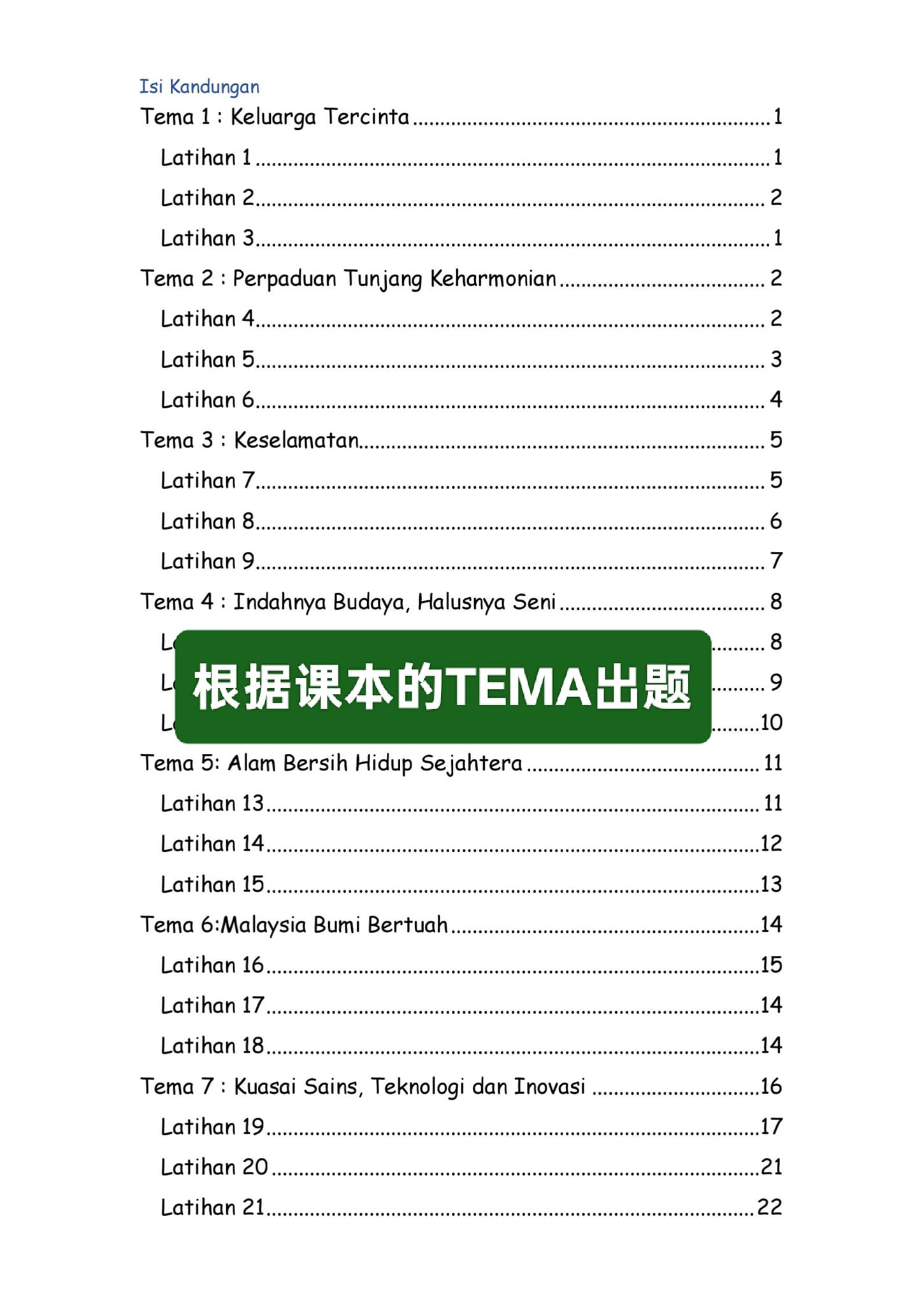 根据课本每个TEMA设计出的BAHAGIAN C,一个Tema 3个练习