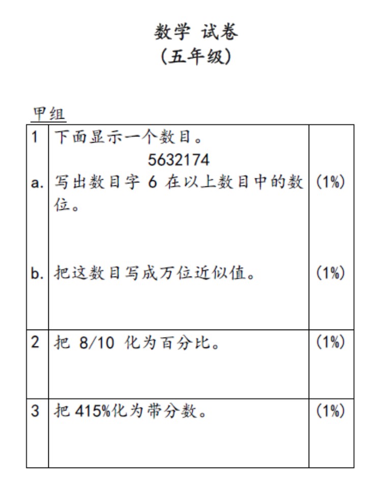 五年级 #数学# 模拟试卷 UASA ( 1set, 3 set)