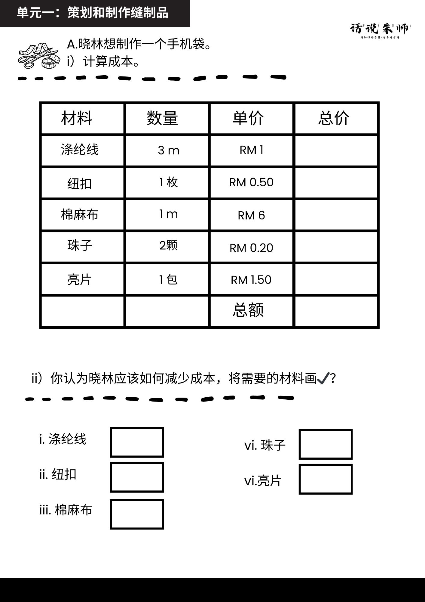 五年级设计与工艺课堂评估练习5A | PBD RBT TAHUN 5A