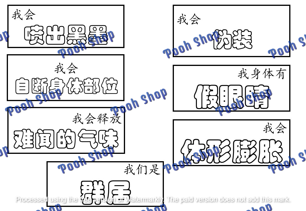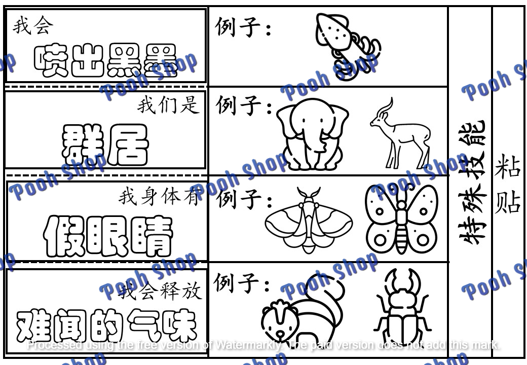 学生可以通过剪贴方式学习动物如何在遇到敌人自我保护。