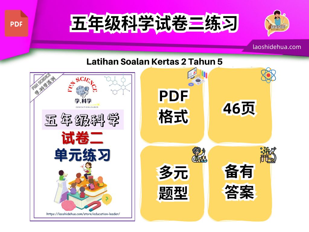 ![[五年级科学] 试卷二单元练习 (M295) - Image 2](https://laoshidehua.com/wp-content/uploads/2021/08/cover.png)