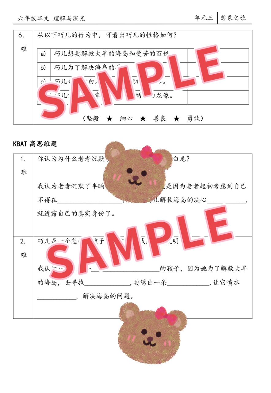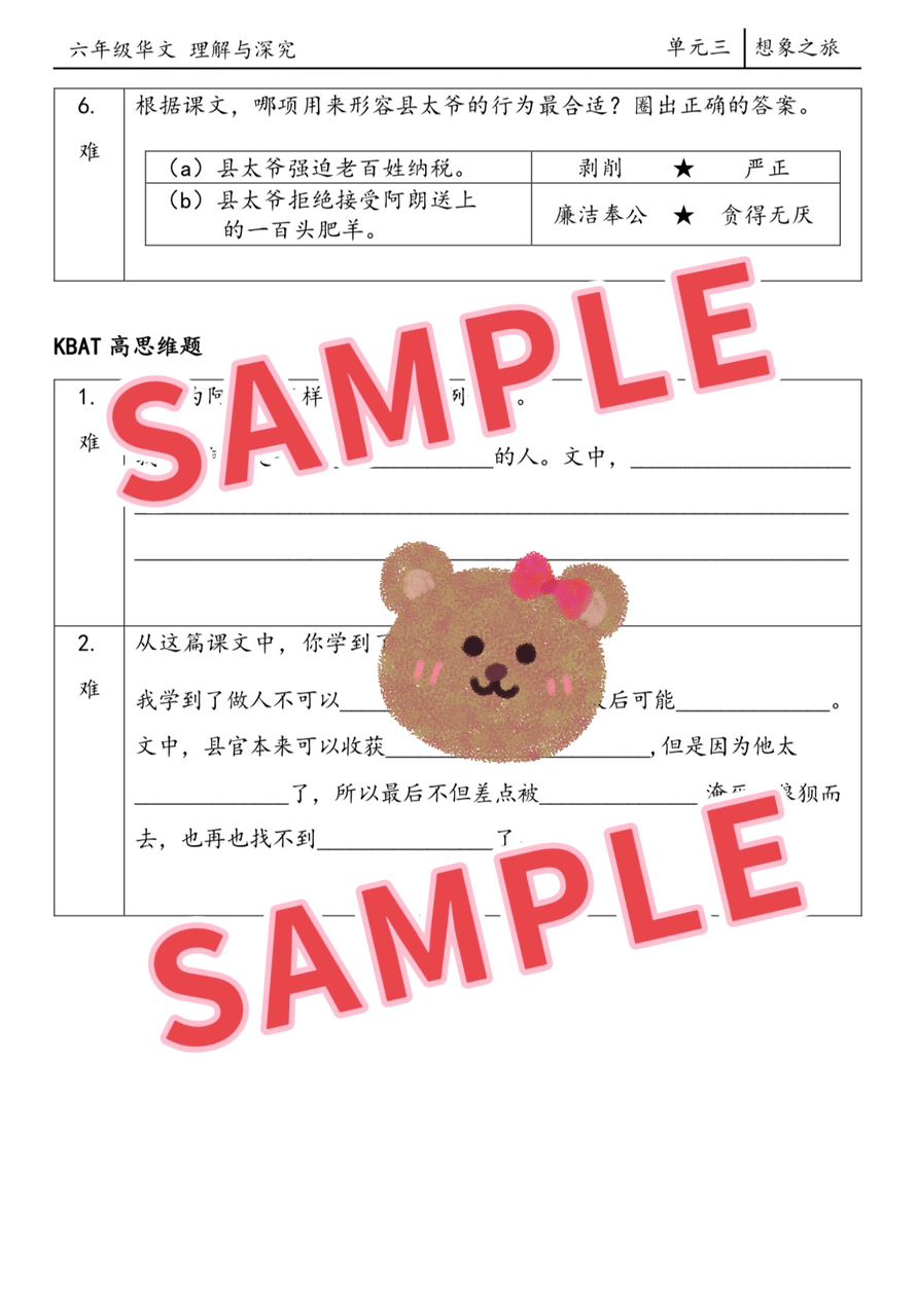 | 六年级华文理解与深究 | 6A, 6B, 6A&B |