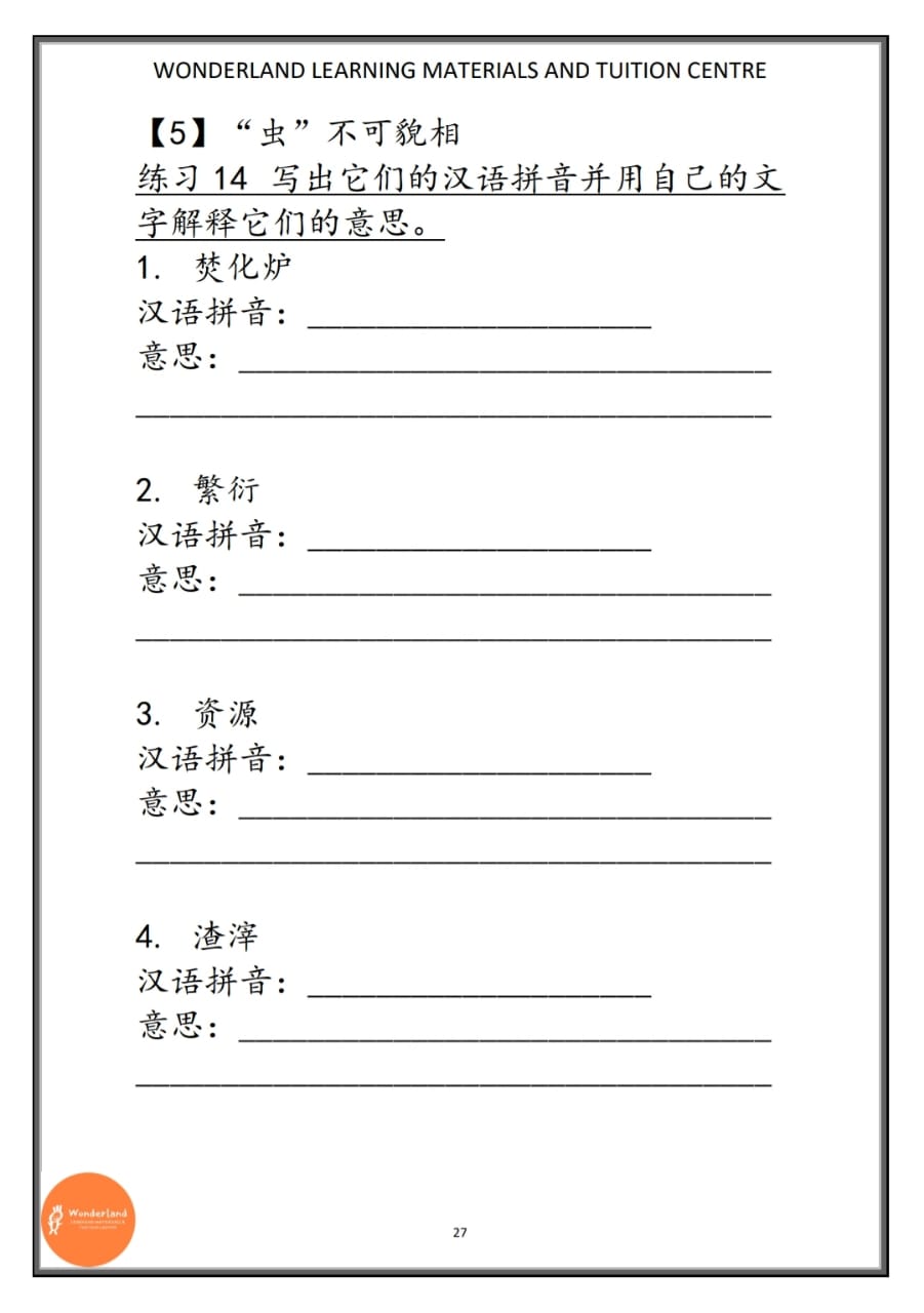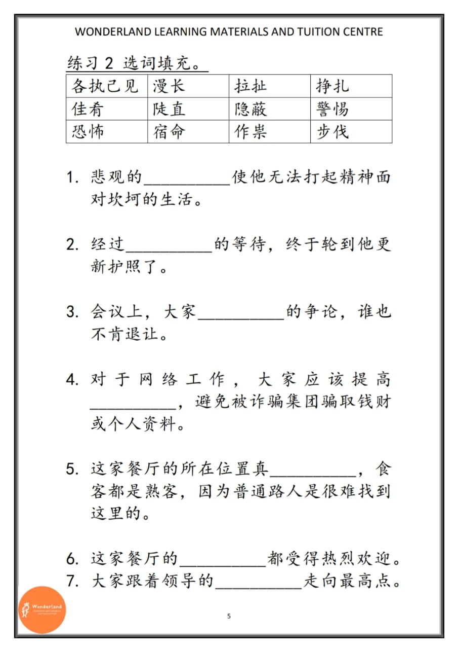[六年级华文] 词语填充与练习