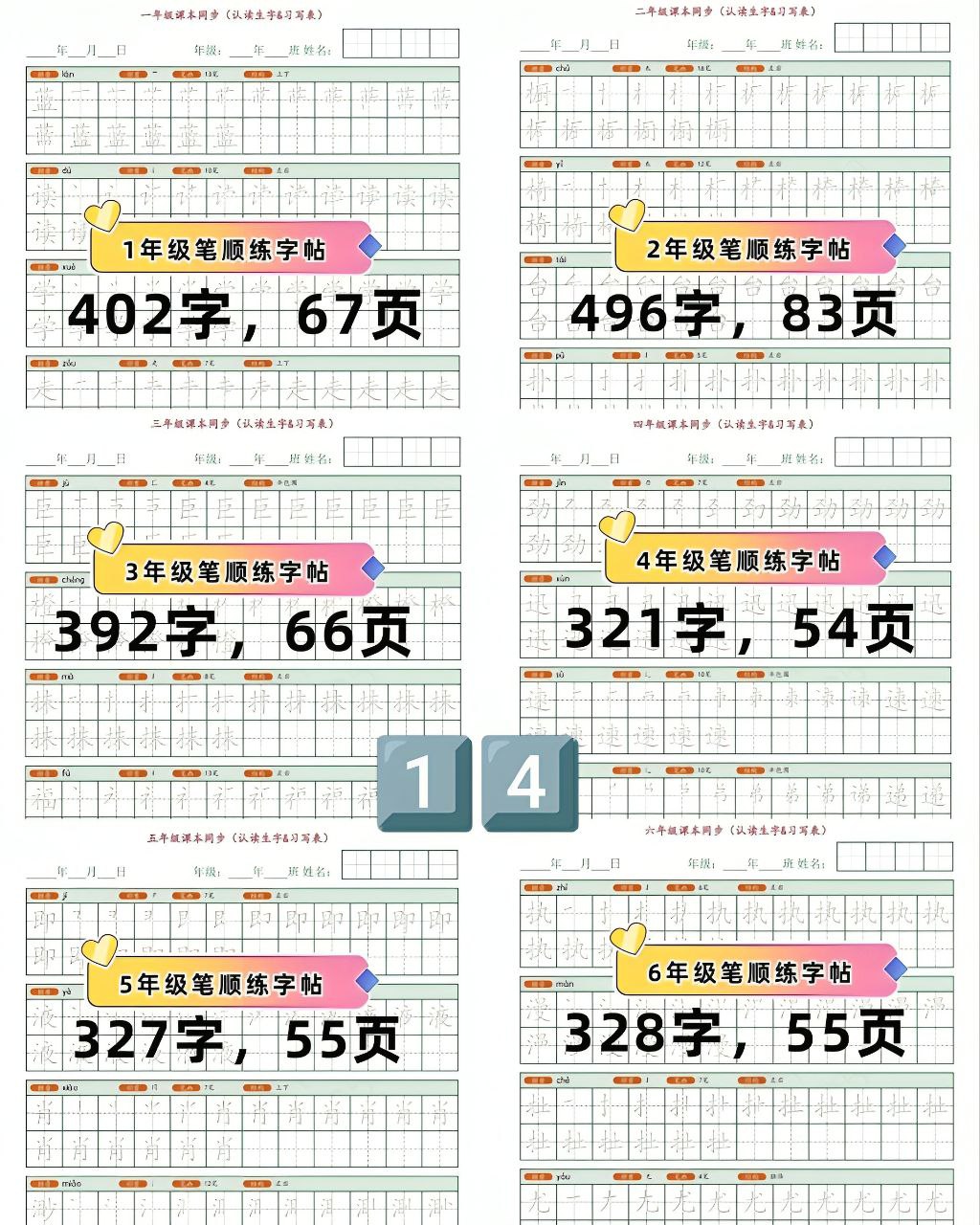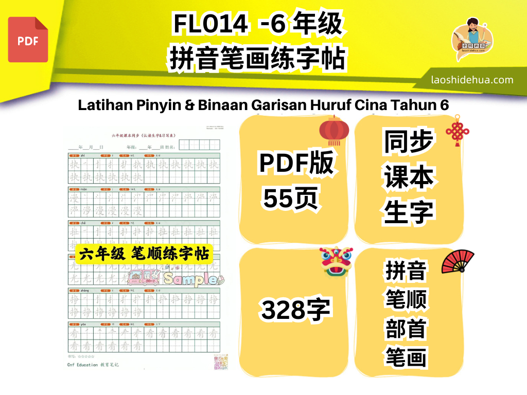 𝗙𝗟𝟬𝟭𝟰 – 6 年级华文拼音笔画练字帖
