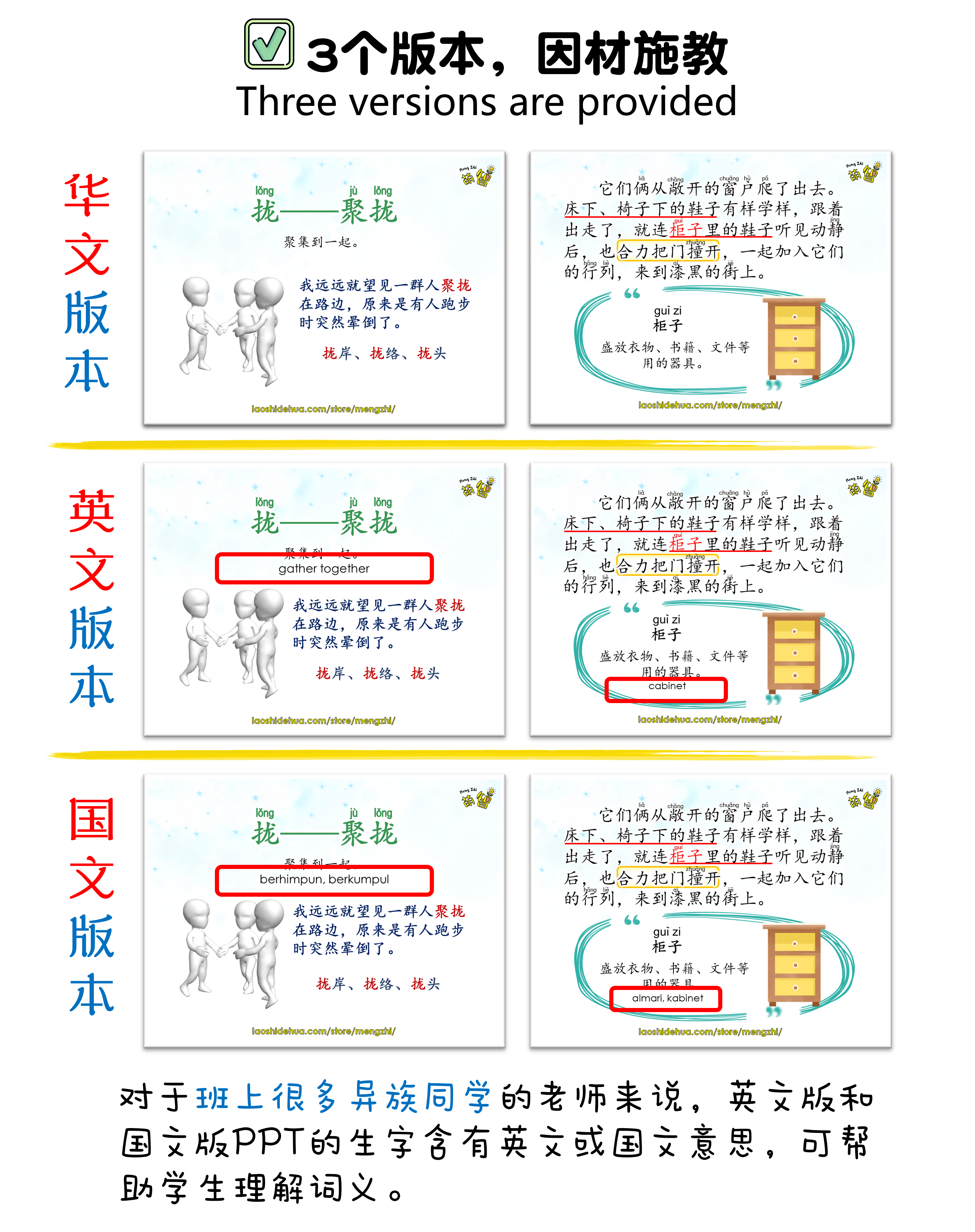 | 词语解释 | 英文版(华文+英文 Chinese + English), 华文版(华文而已 Chinese Only), 国文版(华文+国文 Chinese + Malay) |