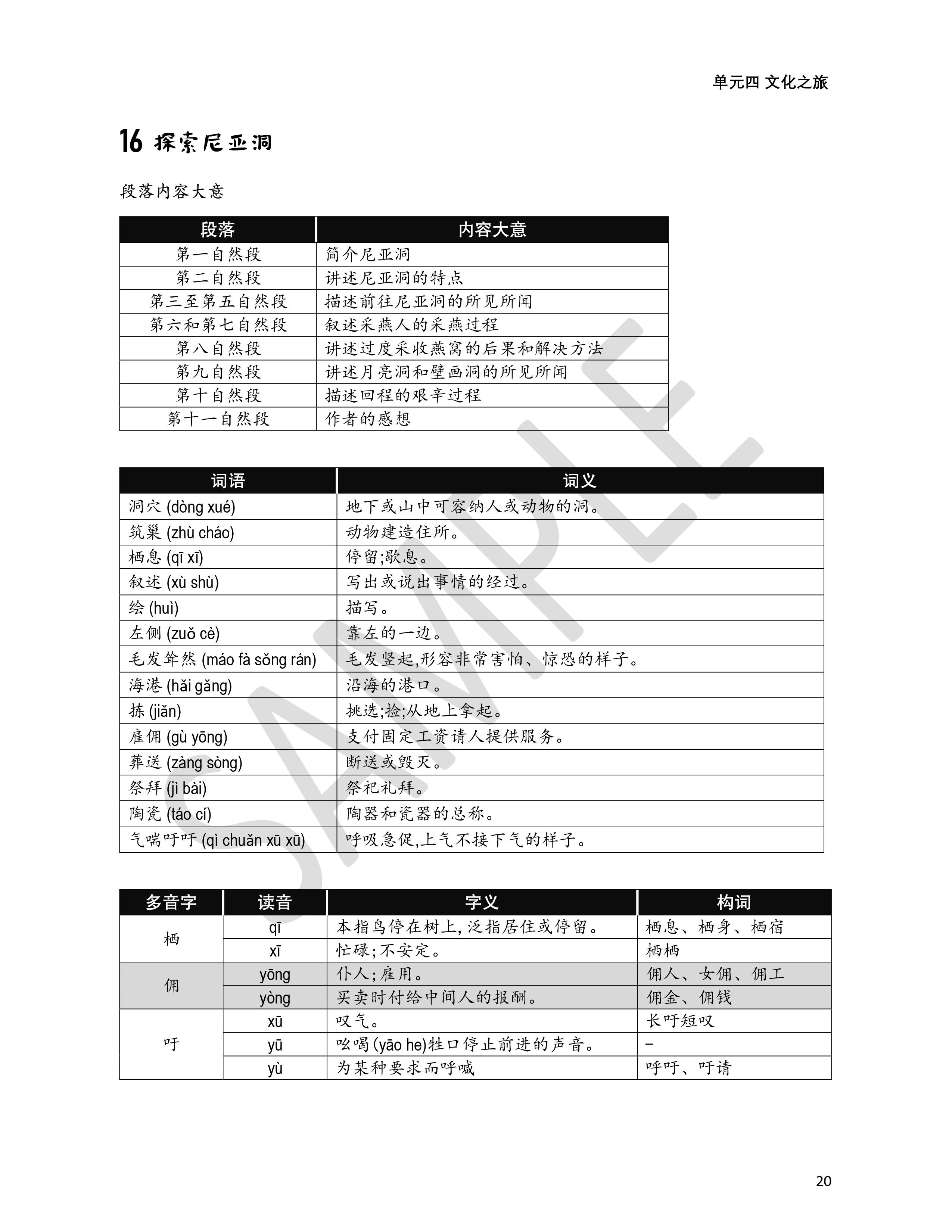 六年级华文课文 (第1-20课)