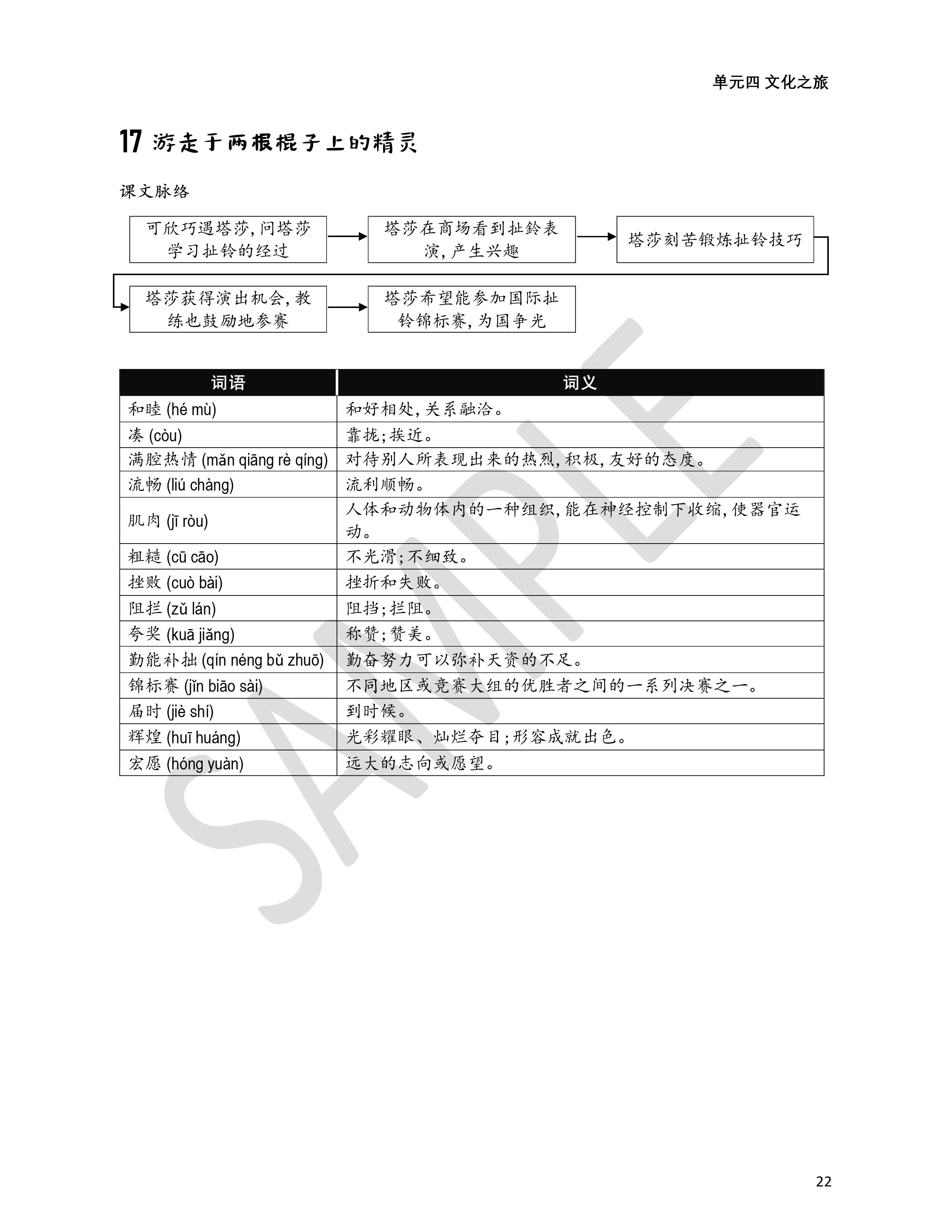 课文词汇 + 汉语拼音 + 含义。