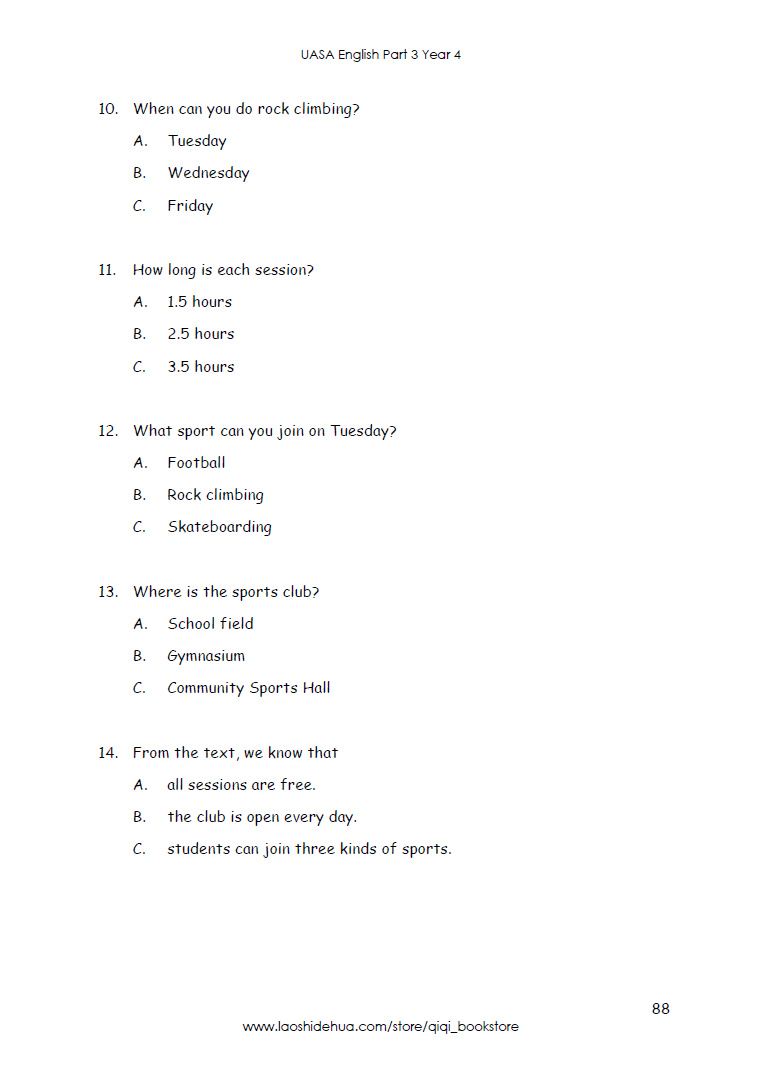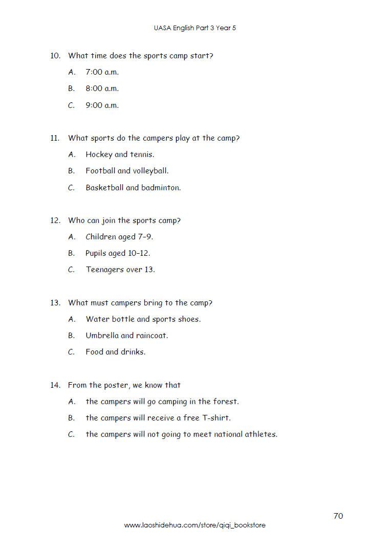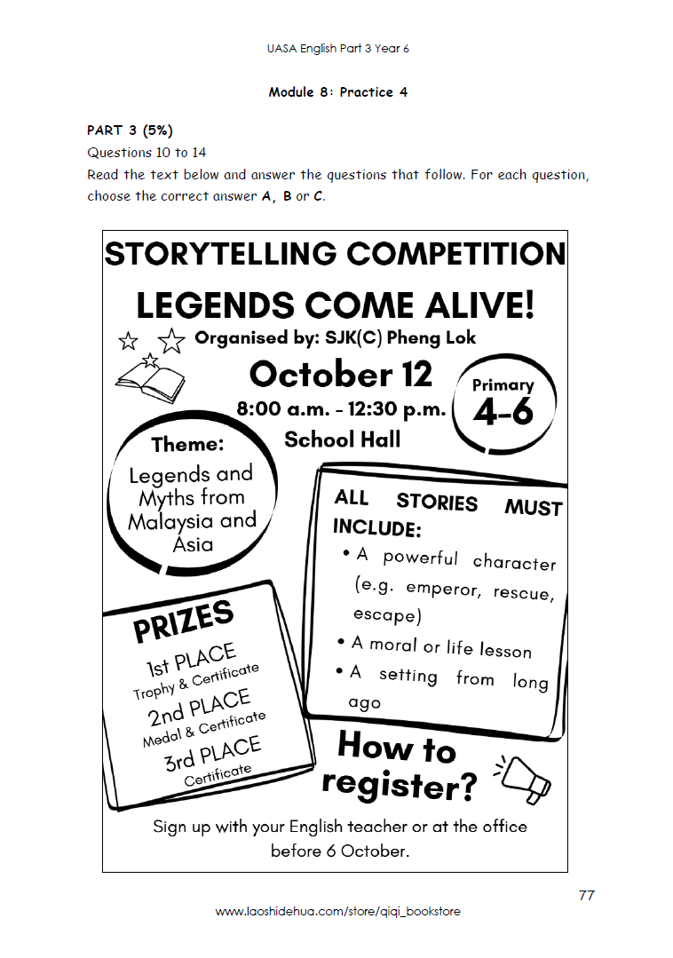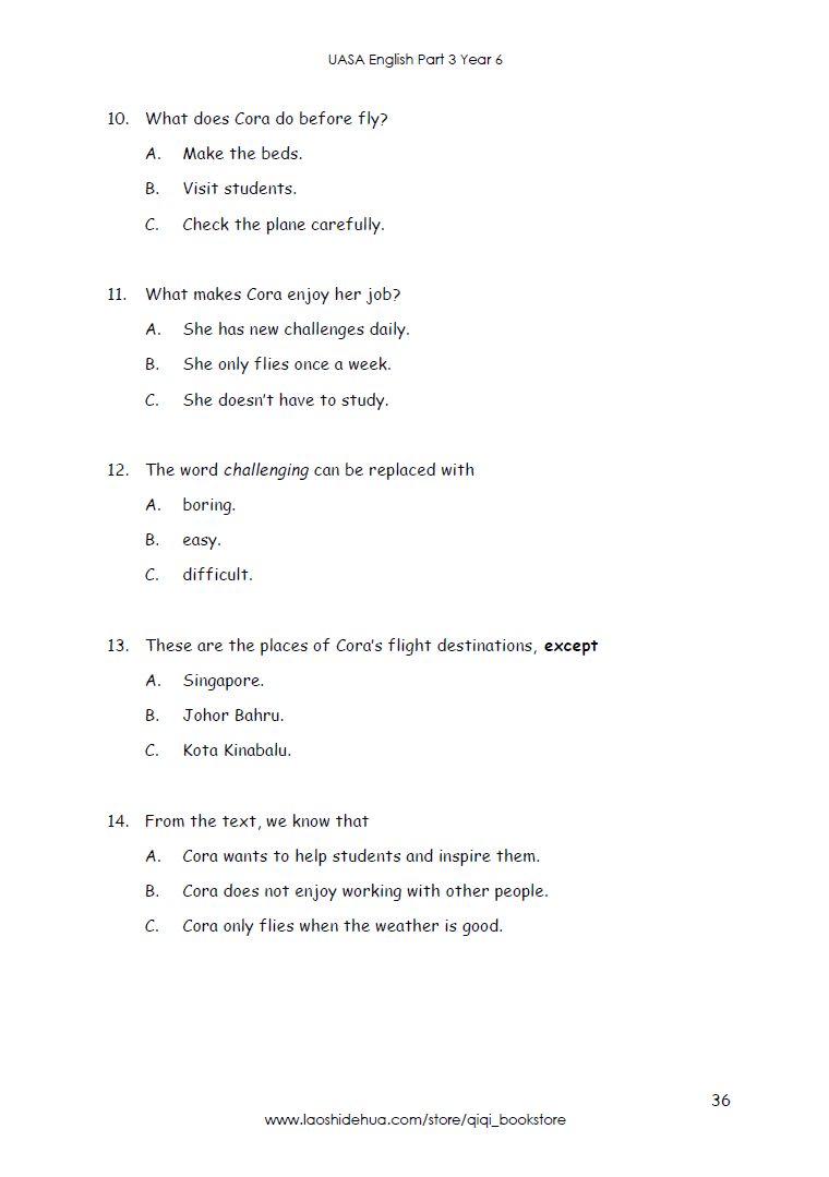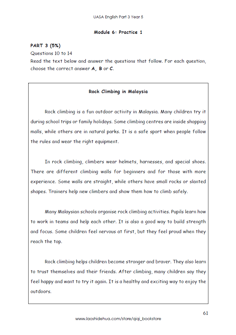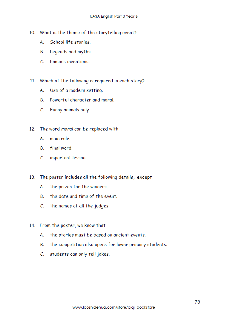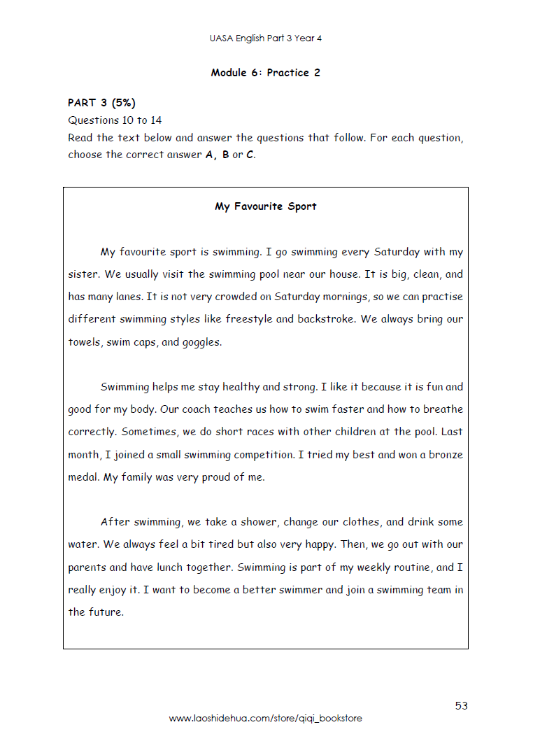 | UASA English Part 4 Practices Year 4/5/6 | Year 4, Year 5, Year 6 |