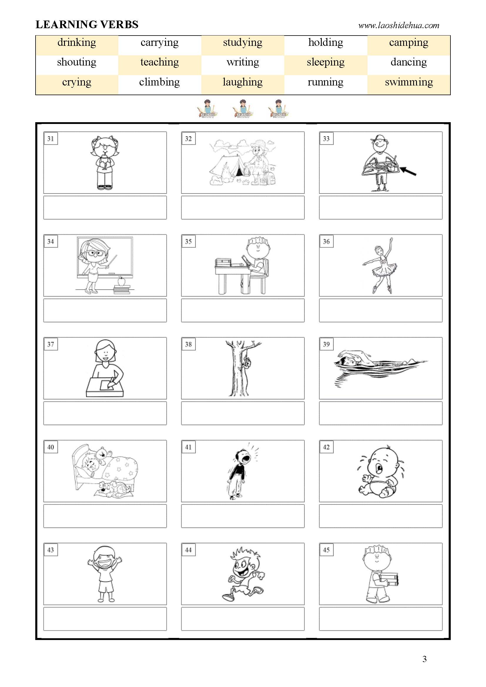 ![[English] Action Verbs Flash Cards and Worksheets (M200) - Image 9](https://laoshidehua.com/wp-content/uploads/2021/06/LEARNING-VERBS_Page_3.jpg)