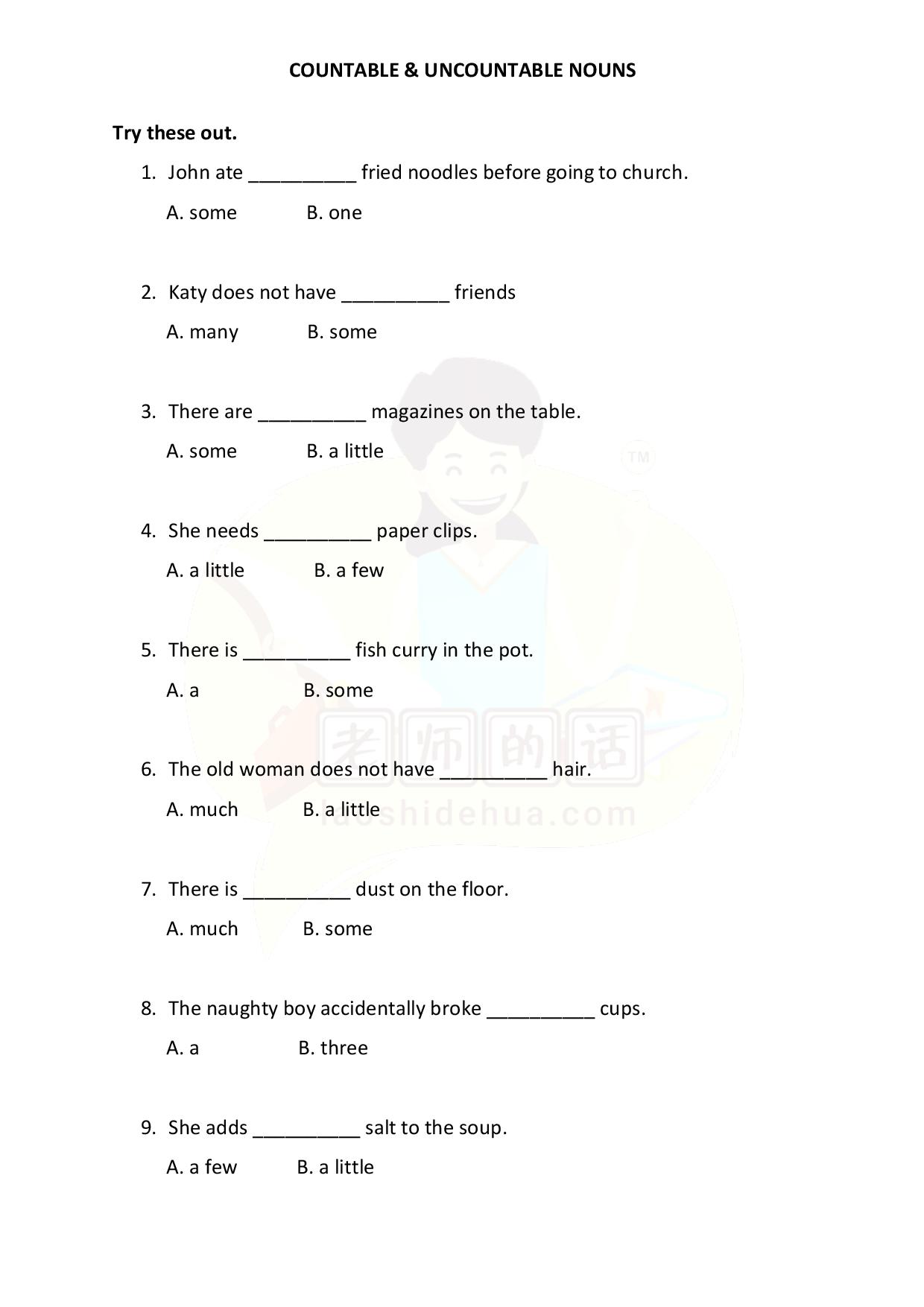 ![[English] Countable & Uncountable Nouns | Note and Exercise - Image 10](https://laoshidehua.com/wp-content/uploads/2021/07/EP-100-COUNTABLE-UNCOUNTABLE-NOUNS-page-001.jpg)