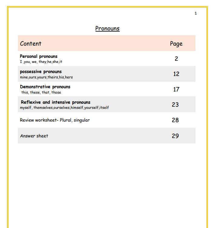 [Year 4,5,6 English] Pronouns Exercise