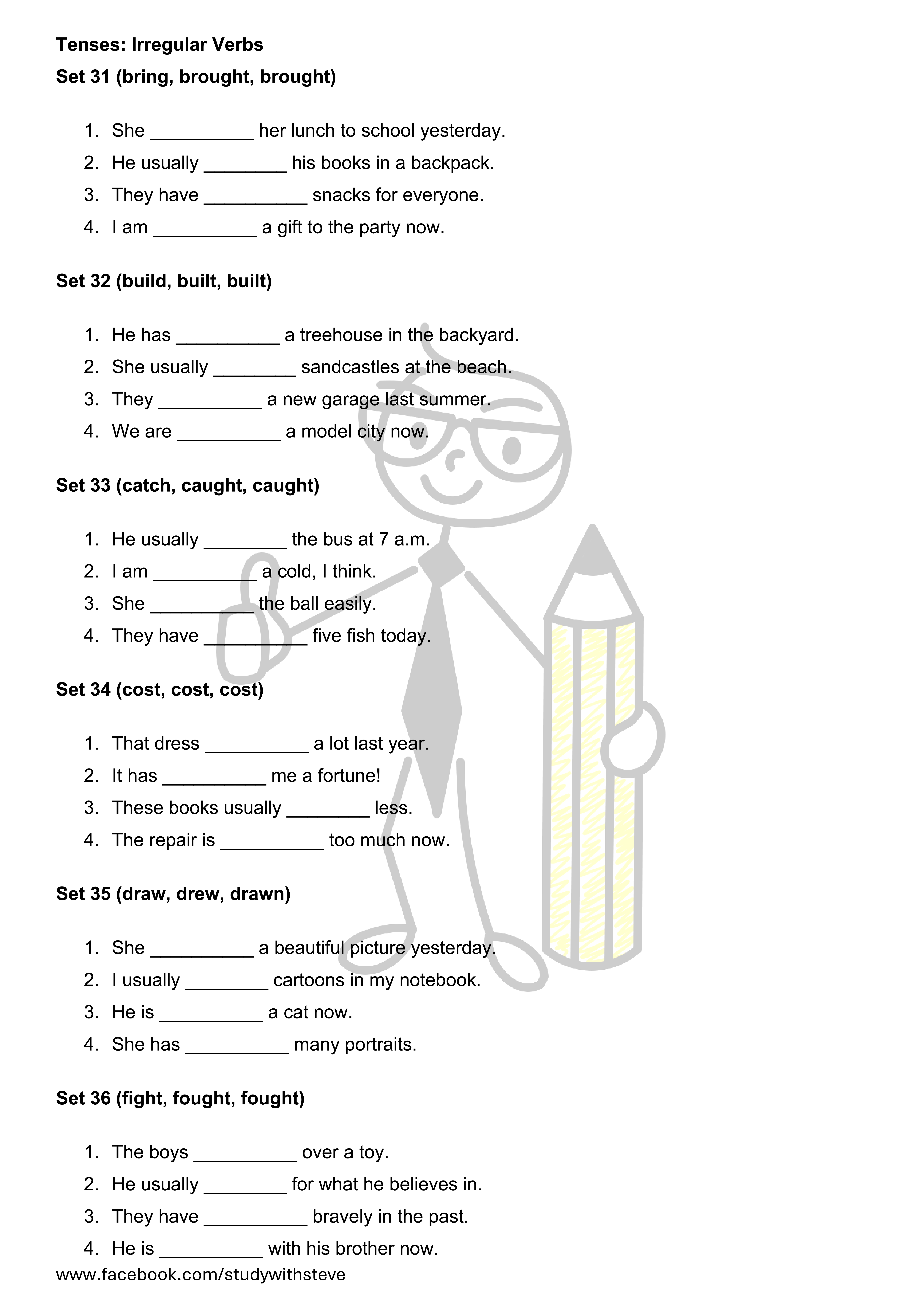 UASA Part 2 Grammar Worksheet: Tenses (280 questions)