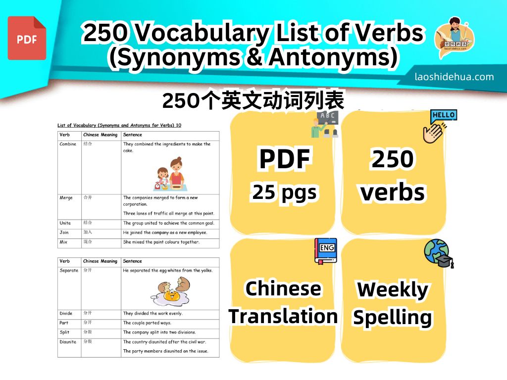 ![[English] 250 Vocabulary List of Verbs (Synonyms & Antonyms)](https://laoshidehua.com/wp-content/uploads/2023/01/Weekly-English-Vocabulary-Verb-Synonym_page-0010.jpg1_.jpg)