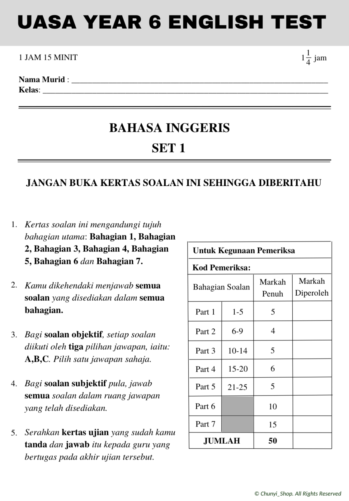 [Year 6 English] UASA ENGLISH MODEL PAPERS