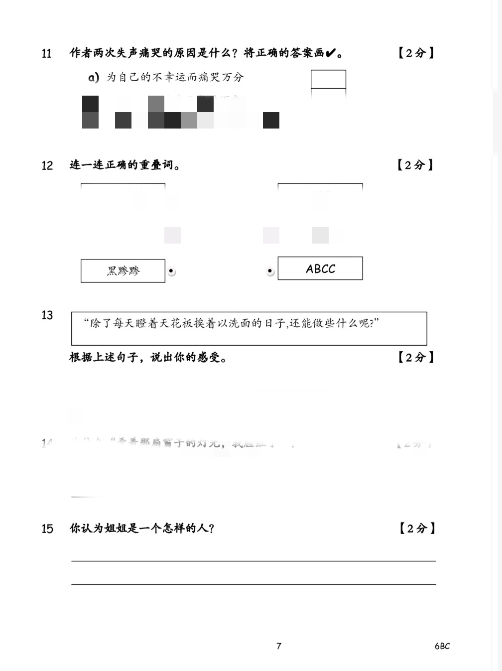 [六年级华文] UPSA年中期评估试卷