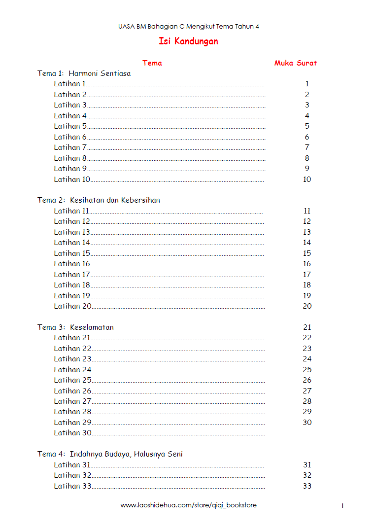 【4年级】UASA BM Bahagian C Mengikut Tema