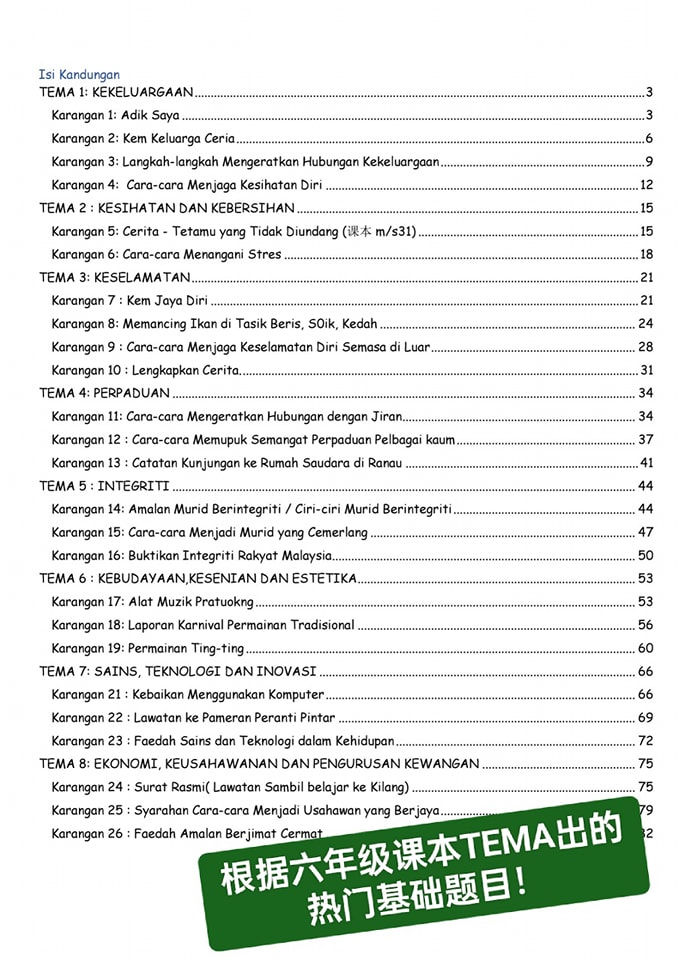 修订版在原有的内容基础上增加了BAHAGIAN D的格式…让小朋友更快掌握UASA 的格式哦!根据课本TEMA出的基础热门题目!