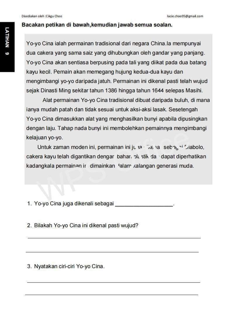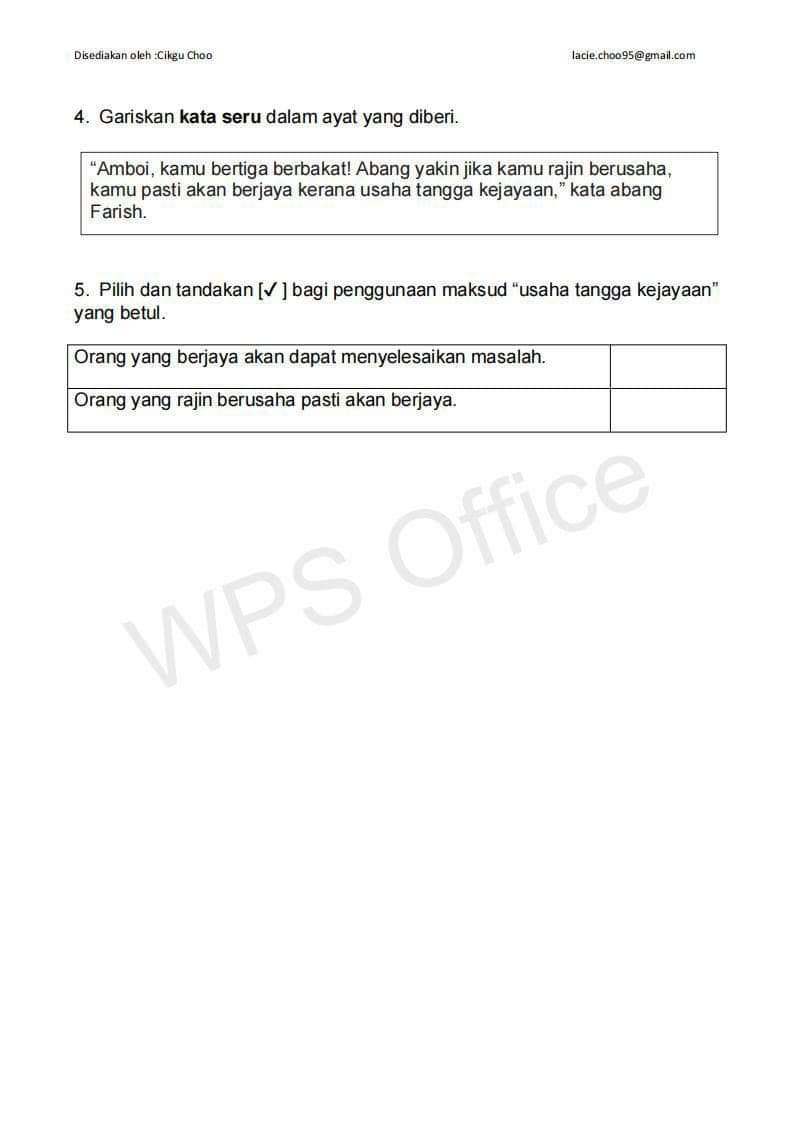 高年级国语理解文【LATIHAN PEMAHAMAN BAHAGIAN B TAHAP 2】