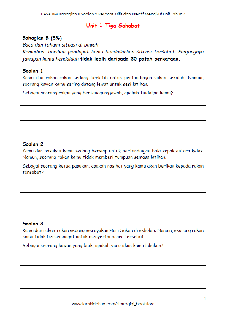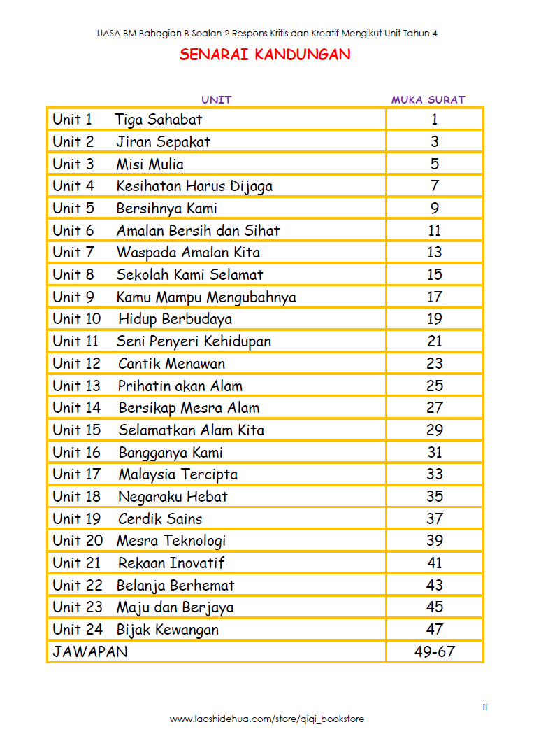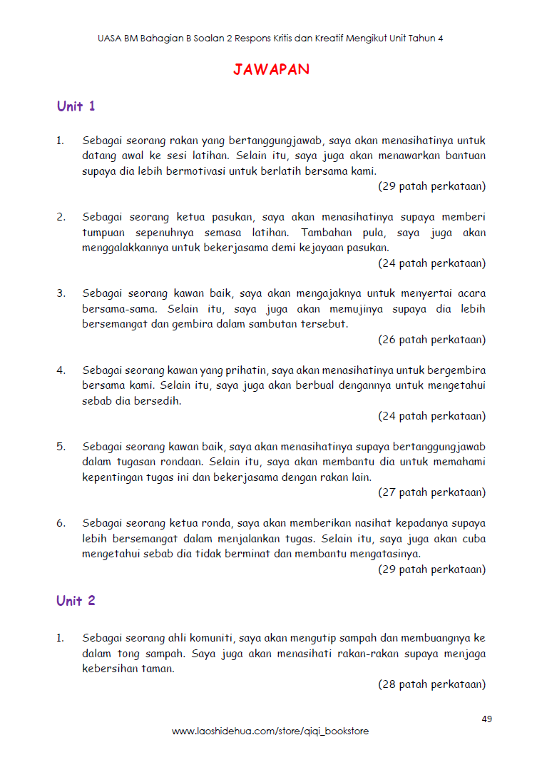 【4年级】UASA BM Bahagian B Respons Kritis dan Kreatif Mengikut Unit