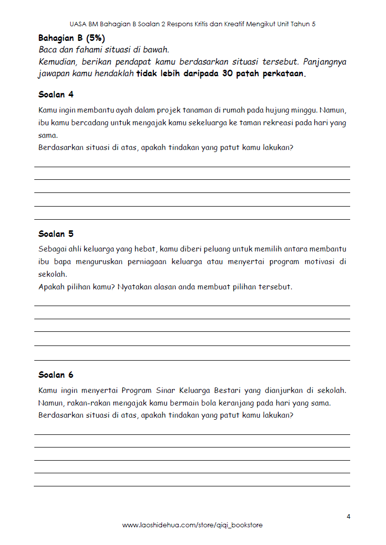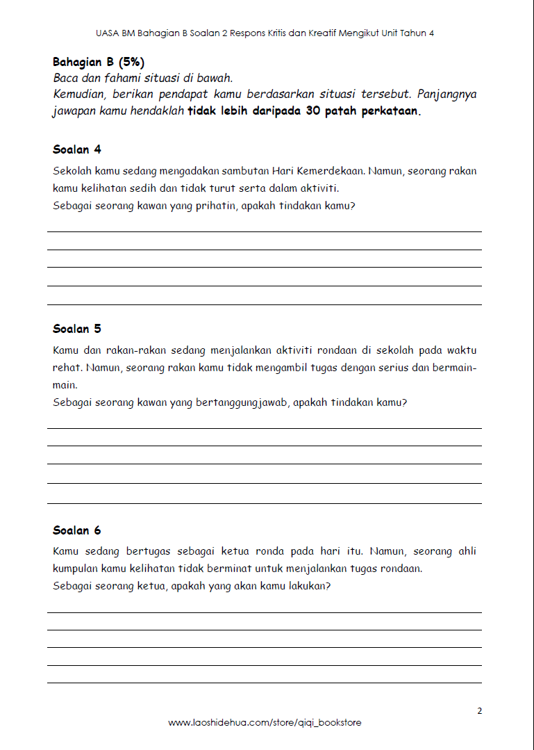 【Bahasa Melayu Tahun 4/5/6】 UASA Bahagian B Respons Kritis dan Kreatif