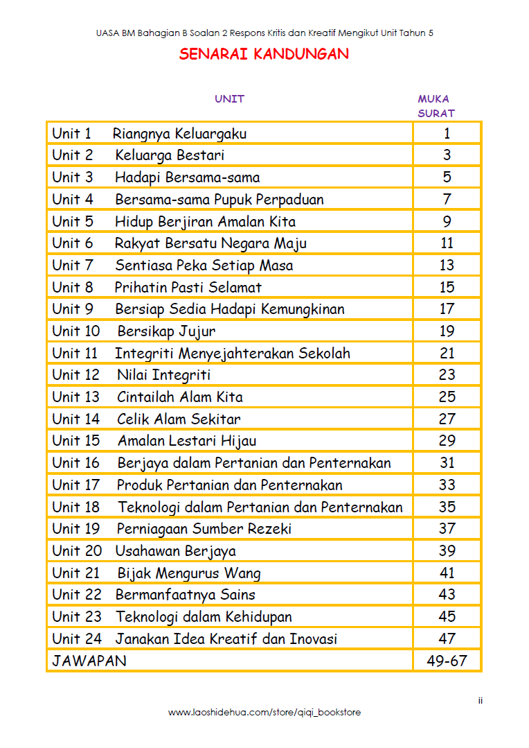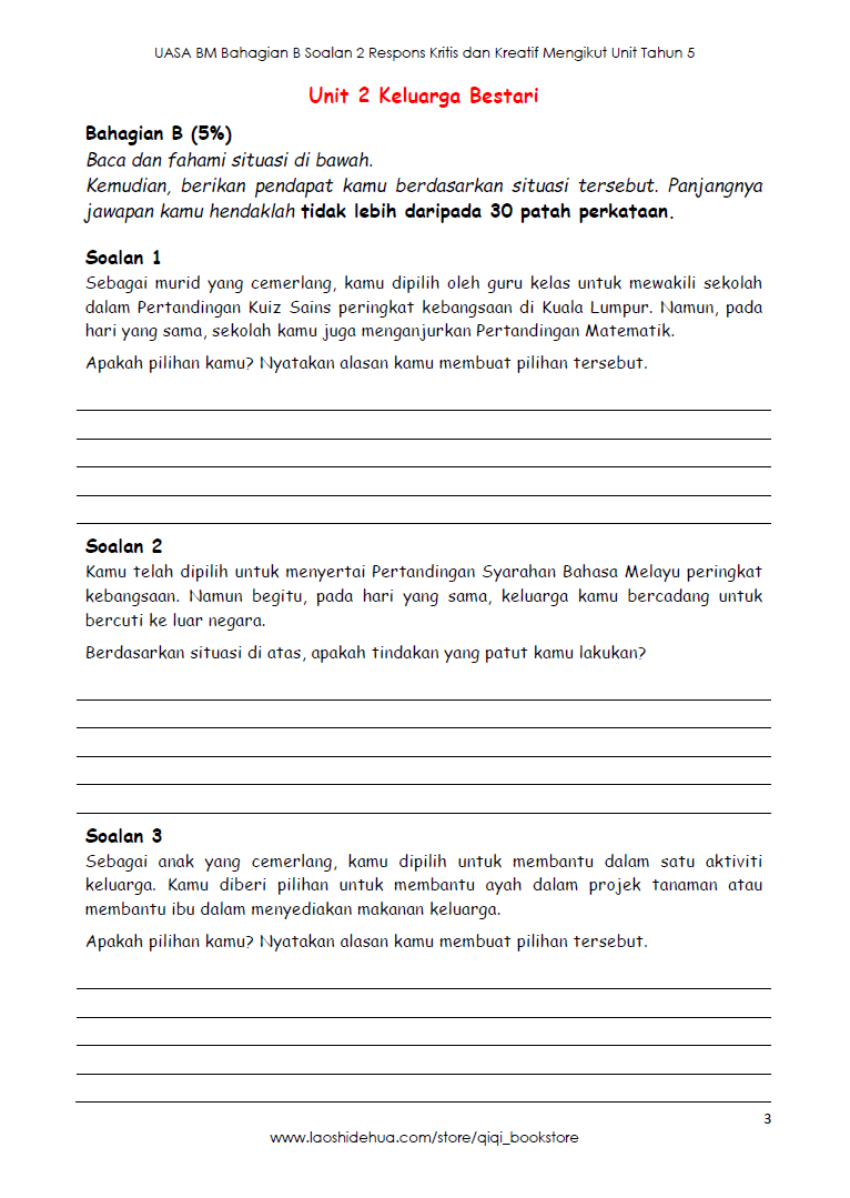 【5年级】UASA BM Bahagian B Respons Kritis dan Kreatif Mengikut Unit