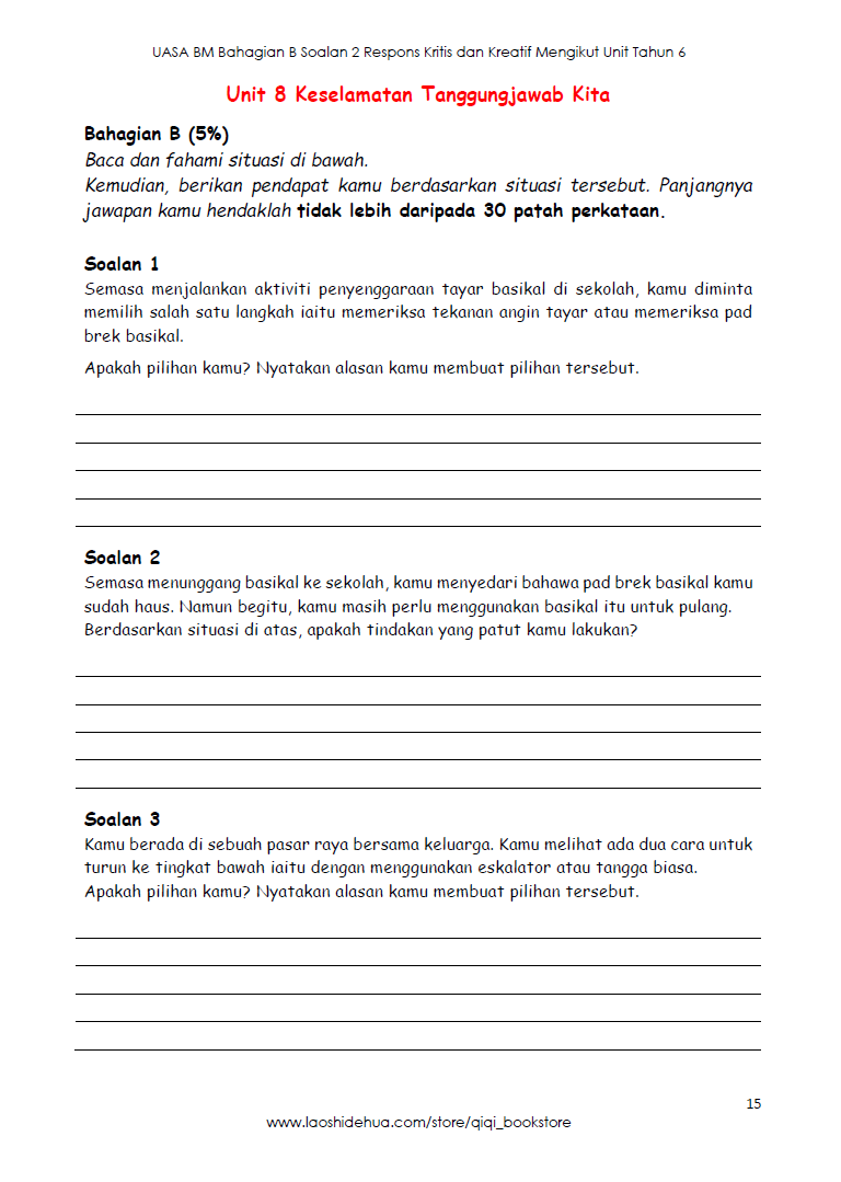 【6年级】UASA BM Bahagian B Respons Kritis dan Kreatif Mengikut Unit