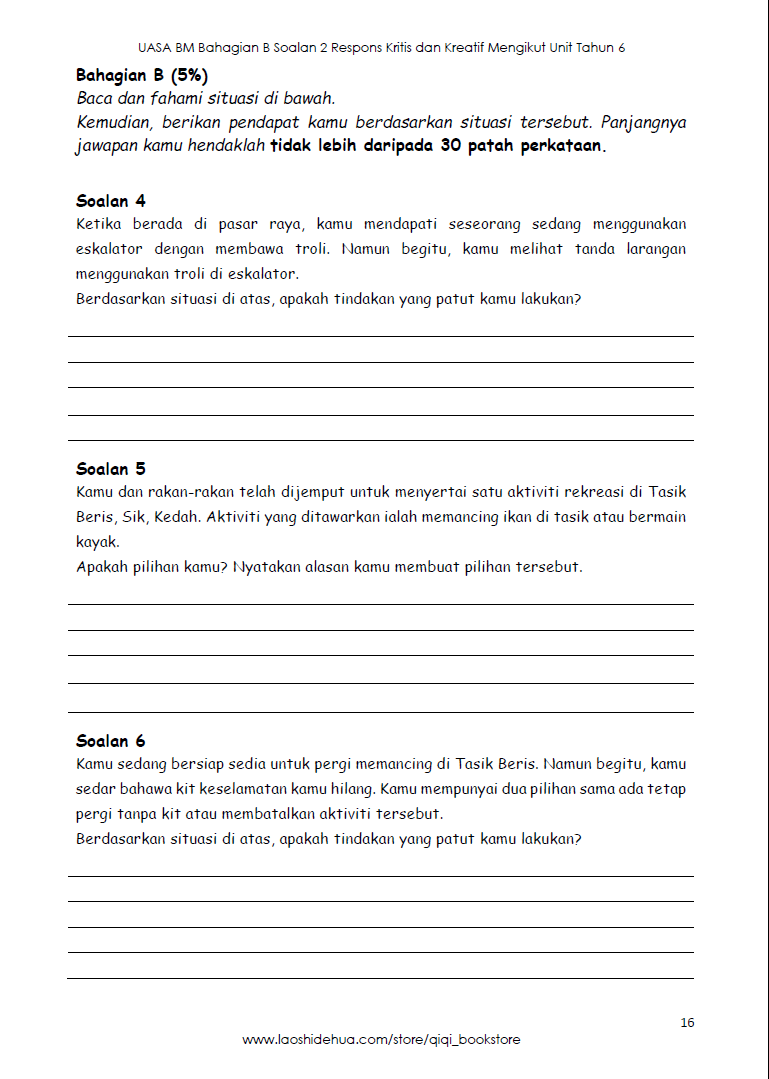 | UASA Bahagian B Respons Kritis & Kreatif | Tahun 4, Tahun 5, Tahun 6 |