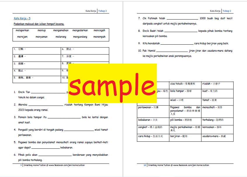 Sesuai untuk Tahun 4, atau 6 serta murid yang lemah dalam perkataan kata kerja
