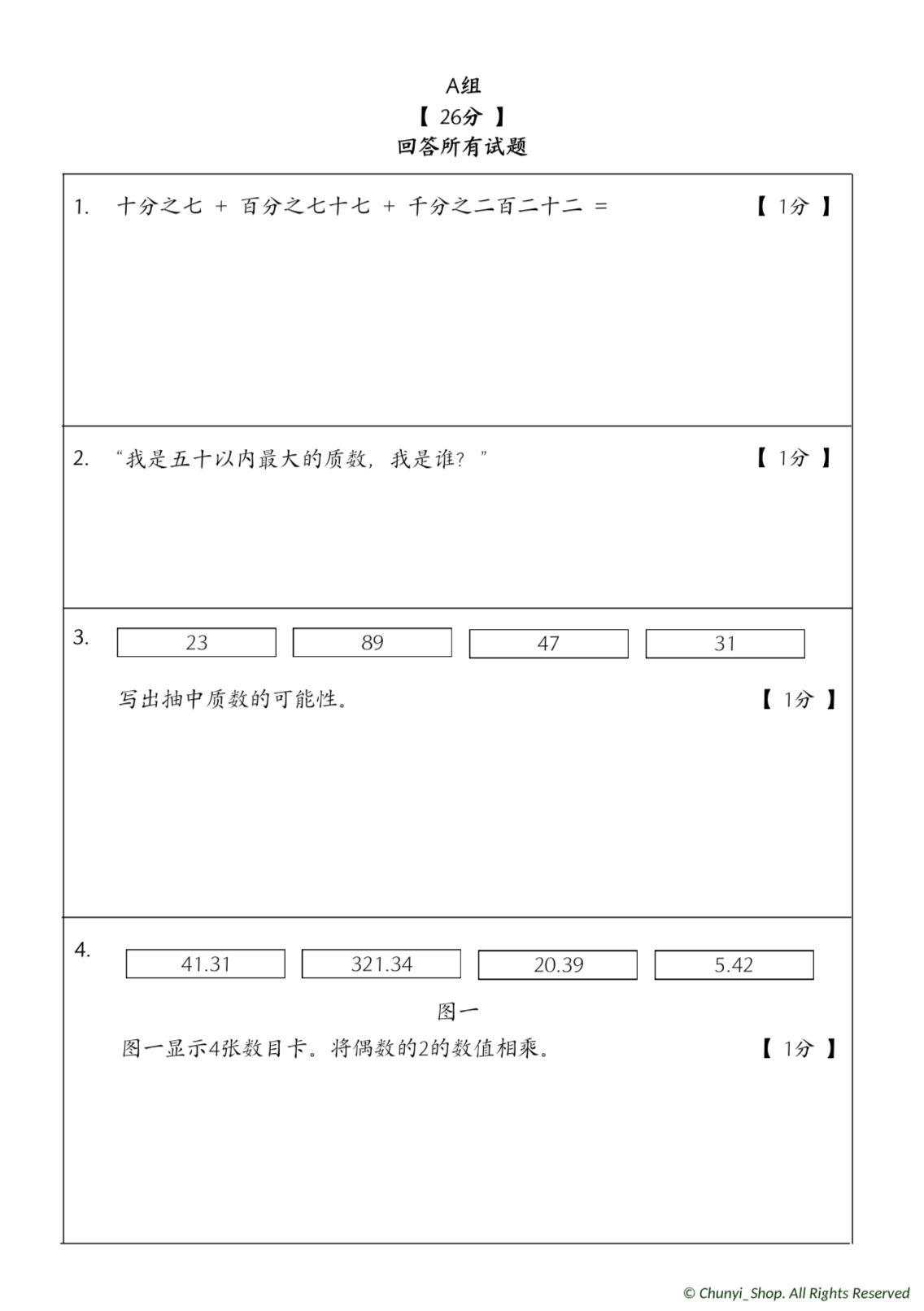 👉 此试卷的版权属于chunyi_shop,一律不允许转卖或抄袭,发现一律公开处理