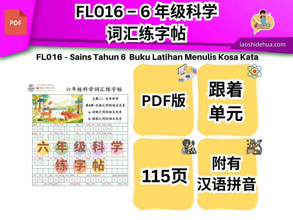 FL016 – 6 年级科学词汇练字帖