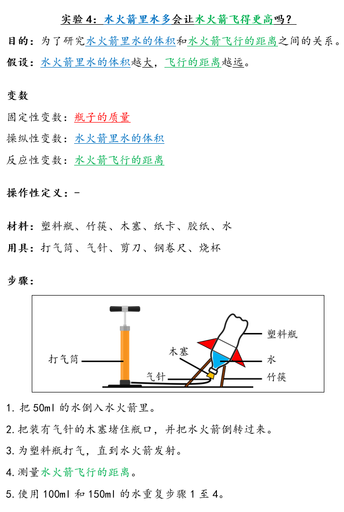 实验4:水火箭里水多会让水火箭飞得更高吗?【课本第10页】
